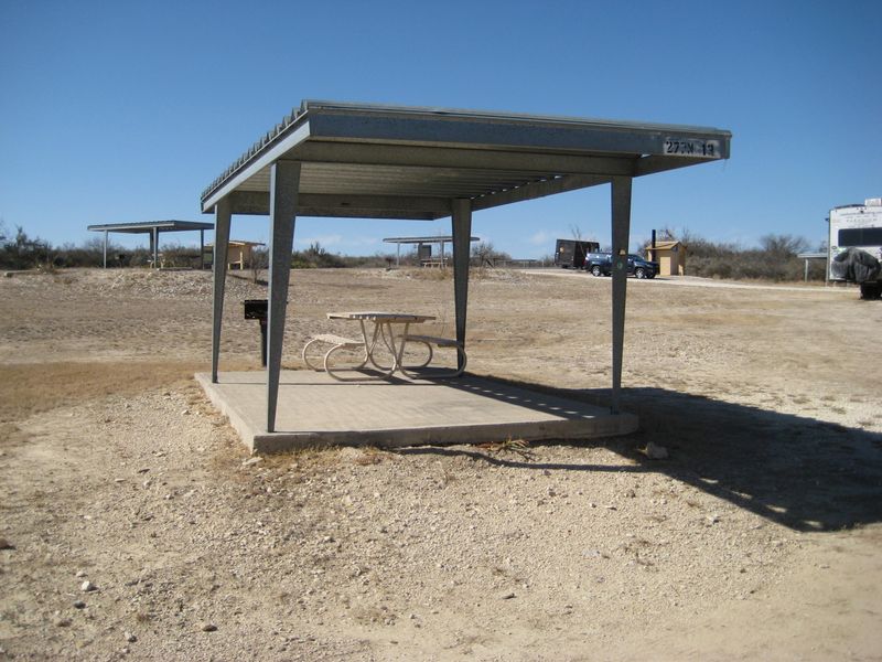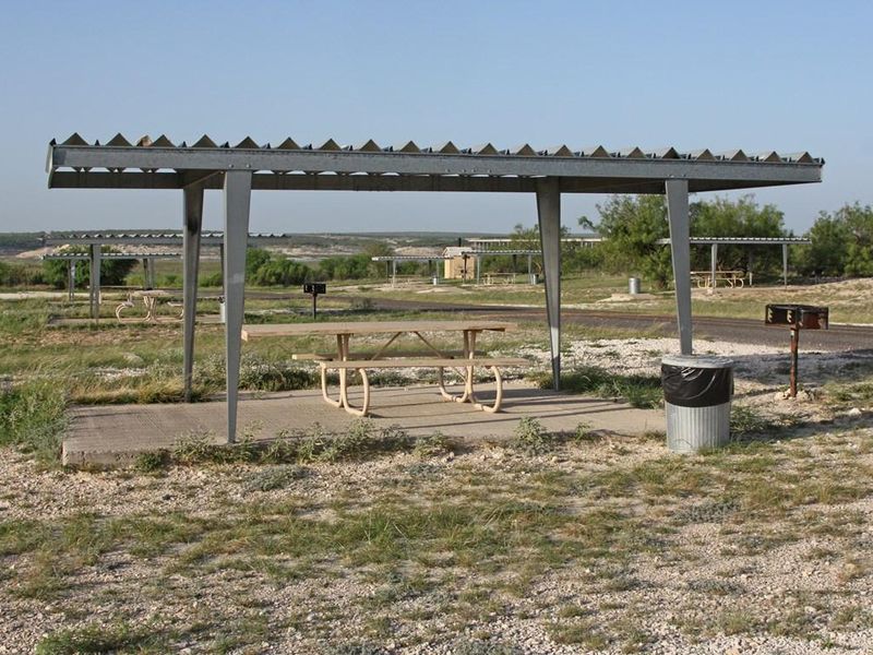 Located 11 miles north of Del Rio at Amistad National Recreation Area, 277 North Group Campground provides access to one of the Southwest's premier water recreation destinations. The campground features one reservable group site and 17 primitive campsites available on a first-come, first-served basis. Each site includes a covered picnic table and BBQ grill, suitable for both tents and RVs. Amistad National Recreation Area sits at the confluence of the Rio Grande, Devils, and Pecos Rivers, where Amistad Dam created a massive reservoir in 1969. The area is renowned for largemouth, smallmouth, and striped bass fishing. Low water levels have limited boat ramp access, though four ramps remain open including one potentially accessible from the campground depending on lake levels. The semi-arid, subtropical climate brings hot, humid summers and mild winters. The campground operates year-round with vault toilets but no water or hookups. Ground fires are prohibited; use the provided grills. Visitors can stay up to 14 consecutive nights with a 60-night annual park limit. Quiet hours run from 10pm to 6am with an 11am checkout. The paved main road gives way to unpaved campsite access roads. Rough Canyon, 15 miles away, offers boat rentals. Nearby attractions include Seminole Canyon State Park's ancient rock art and Devils River State Natural Area.