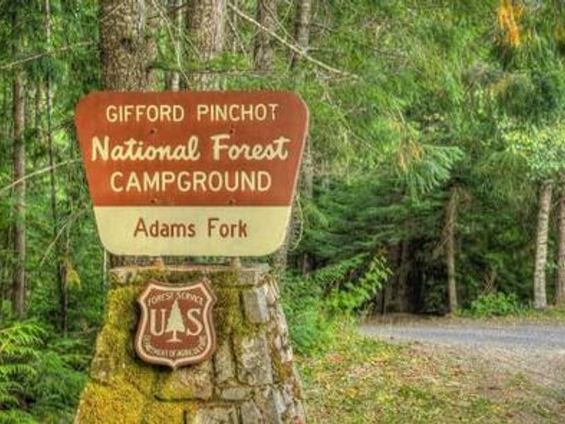 Nestled among tall conifers along the Adams Creek Fork of the Cispus River, Adams Fork Campground provides 24 paved back-in sites including 3 double sites, with several sites situated along the riverbank. The campground contains historic basket trees used by the Upper Cowlitz Tribe and features interpretive signage explaining their cultural significance. Part of the Cowlitz Valley Ranger District in Gifford Pinchot National Forest, the campground sits at a moderate elevation in heavily forested terrain. The location is particularly popular with OHV enthusiasts due to its proximity to the Valley Trail network, offering 50 miles of multi-use trails accessible to dirt bikes, ATVs, hikers, horseback riders, and mountain bikers. The trails provide views of the Cispus River Valley and Tongue Mountain. Anglers can fish for brook trout in the Cispus River, which originates in a high glacial valley in the Goat Rocks Wilderness. The campground also serves as an excellent base for exploring Mount St. Helens and the surrounding wilderness areas including the Goat Rocks, Glacier View, Tatoosh, and William O. Douglas Wilderness Areas.
