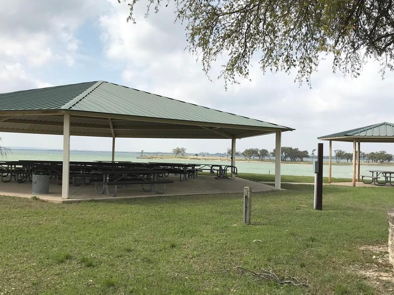 Airport Beach Shelter sits on one of Waco Lake's sandy beaches on the north shore, approximately a quarter-mile west of the dam. The lake is primarily fed by the Bosque River, which runs for 115 miles through central Texas. The accessible group shelter can accommodate up to 110 guests and includes a picnic area with grills and tables, making it suitable for family reunions and large gatherings. The main lake shoreline features a large amount of submerged timber, which typically holds fish year-round. Anglers can expect to catch catfish, crappie, large and smallmouth bass, as well as sunfish. When operational, the park provides a swimming beach, boat ramp, and dock for water activities. The facility is managed by the U.S. Army Corps of Engineers and requires parking passes to be obtained from the Waco Lake Project Office prior to arrival. Nearby attractions include the Waco Lake Wetlands, which offer educational tours through a six-acre nursery of aquatic plants and more than 130 species of birds. A zoo is also located in the area. The shelter operates with an 8:30 p.m. closing time, and visitors must remain on designated roadways with no parking or driving on grass or shoreline areas.