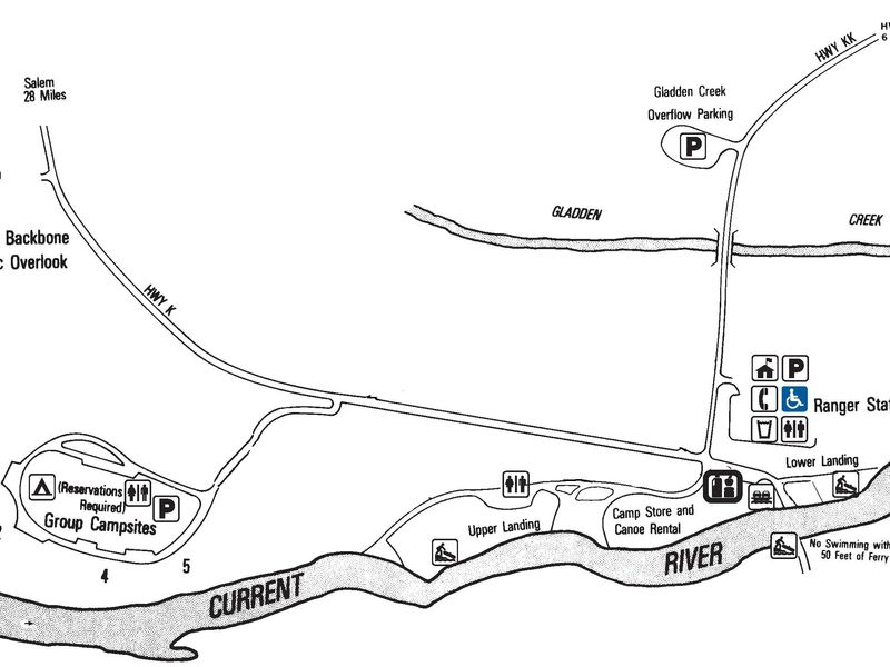 From Salem, Missouri, take Highway 19 south for 4 miles. Turn right on Highway KK and continue for 16 miles to Akers Group Campground. The campground is 0.5 miles north of Akers Ferry at the junction of Highways K and KK.