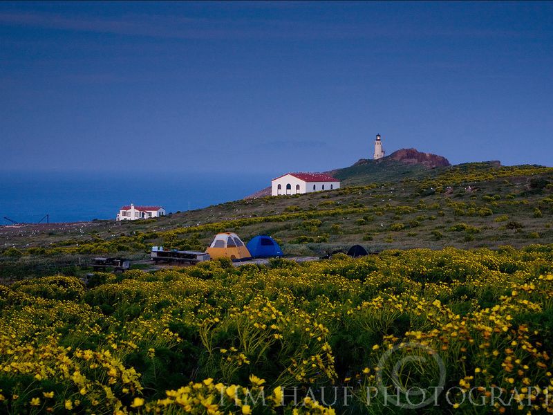Anacapa Island Campground offers a unique primitive camping experience on East Anacapa Island, perched on bluffs 250 feet above the Pacific Ocean. Accessible only by boat via Island Packers from Ventura or Oxnard, visitors must climb 157 stairs from the landing cove and hike half a mile to reach the seven campsites. The campground provides commanding views of the surrounding ocean and neighboring islands. The island's volcanic origins are evident in towering sea cliffs, sea caves, and natural formations like the iconic 40-foot Arch Rock. Two miles of trails lead to dramatic overlooks and the historic 1932 light station. The treeless, exposed terrain turns from brown to vibrant green after winter rains, and the island hosts the largest breeding colony of western gulls in the world. From April through mid-August, nesting western gulls create rookery conditions with constant noise, guano, and territorial birds. Recreational opportunities include exploring rich kelp forests at Landing Cove for snorkeling, diving, and kayaking, as well as observing California sea lions, harbor seals, and seasonal seabird nesting. Campers must be completely self-sufficient, bringing all water, food, and camping gear. The exposed conditions require sturdy, low-profile tents and preparation for wind, sun, and potential fog. Since boat pickups can be affected by sea conditions, visitors should pack supplies for an extra day.