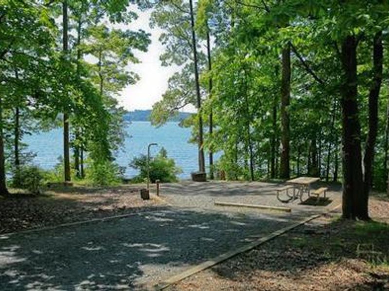 Badin Lake Campground borders the lakeshore of 5,000-acre Badin Lake in central North Carolina's Uwharrie National Forest, offering a shaded retreat within a dense forest of pines and hardwoods. The campground operates year-round and features two loops totaling 35 non-electric sites, many situated directly on the waterfront. Each site includes a picnic table, fire ring with grill, lantern post, and tent pad. Flush toilets and hot showers are conveniently located in both the upper and lower loops, and drinking water is accessible throughout the campground. Sites 17 and 19 are reserved for first-come, first-served campers. Badin Lake Recreation Area serves as a hub for outdoor activities in the region. The lake is popular for swimming, boating, and fishing for bass, bream, crappie, and catfish. A boat ramp is located 2 miles from the campground. On land, approximately 40 miles of non-motorized trails accommodate horseback riding, mountain biking, and hiking, while 17 miles of motorized trails are available for off-road vehicle enthusiasts. The surrounding national forest also offers hunting opportunities for big and small game. The campground's location in the Piedmont region means mild spring and fall weather with temperatures in the 60s and 70s, hot and humid summers reaching the upper 80s and 90s, and cool winters with lows in the 30s and highs in the 50s. Periodic prescribed burns may occur near the facility, potentially affecting air quality during and after burning operations.