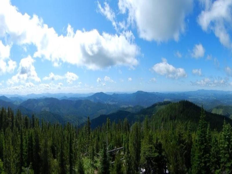 Bald Mountain Lookout offers a unique overnight experience in a historic fire lookout that served the Forest Service from 1956 until 1984. Perched 50 feet above the ground at 5,334 feet elevation on one of the highest peaks in the Hoodoo Mountain Range, this rustic retreat provides unforgettable panoramic views of the golden rolling hills of the Palouse to the south and St. Maries to the north. The heavily forested surrounding landscape features a diverse mix of larch, red cedar, hemlock, western white pine, Douglas fir, and Engelmann spruce. The lookout cabin accommodates up to four people with a futon that folds into a twin bed, two cots, a table with four chairs, and basic cookware and utensils. Propane appliances include a cooking stove and heater for comfort during cool mountain evenings. An exterior catwalk surrounds the cabin, providing an ideal vantage point for watching sunrises and sunsets, stargazing, and wildlife viewing. Eagles, bear, moose, elk, and deer are frequently spotted in the area. Access to Strychnine Ridge Trail 319 begins just southwest of the lookout, offering hiking, mountain biking, and equestrian opportunities. The lookout is located just off Highway 6, the scenic White Pine Scenic Byway. High clearance vehicles are required to reach the lookout via rough forest roads; trailers are not recommended.