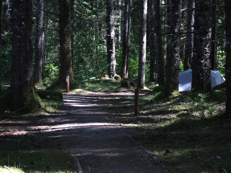 The campground is accessible only by foot via a quarter-mile trail from the main dock in Bartlett Cove. Bartlett Cove has no road access from other areas of the US or Canada. Visitors must fly or take the Alaska Marine Highway ferry into Gustavus, or arrive by cruise ship or private vessel. Wheelbarrows are available at the dock to help transport gear. Stop by the Visitor Information Station near the dock to obtain a camping permit and attend the required orientation.