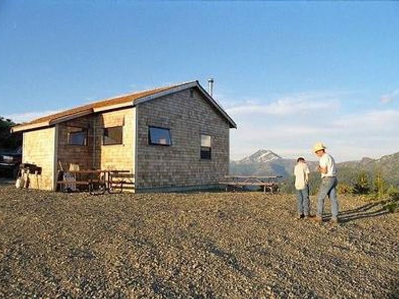 Perched on a high, narrow mountain ridge at 5,280 feet elevation, Bear Basin Lookout and Pierson Cabin offer an exceptional backcountry accommodation experience in the Six Rivers National Forest of northern California. The site provides awe-inspiring 360-degree views spanning from the Siskiyou Wilderness to the east to the Pacific Ocean to the west. The current lookout building has a rich history, originally constructed by the Civilian Conservation Corps in 1935 at Camp Six, where it served as an active fire detection tower through the 1990s. The structure was relocated to Bear Basin Butte in 1996 for recreational use. The accompanying Pierson Cabin is a modern interpretation of 1930s Forest Service architecture, built in the 1990s to complement the historic lookout. The rental includes both structures and can accommodate up to eight guests in the base rate, with capacity for up to 12 guests for an additional fee. The cabin features an entry room with counter space for food preparation, three double beds (including one bunk), a four-seat dining table, seating, a bookcase, and a wood-burning stove with provided firewood. The lookout contains a futon for sleeping. Outside facilities include a vault toilet, picnic tables, and a campfire ring. Board games and books may be available. No electricity or water is provided; guests must bring all water, food, bedding, and camping equipment. The remote location provides access to exceptional outdoor recreation. Doe Flat and Island Lake Trailheads into the Siskiyou Wilderness are within three miles. Wildlife viewing opportunities include deer and bears. The area offers excellent bird watching, hiking, and horseback riding. The Smith River National Recreation Area Visitor Center is approximately 21 miles away.