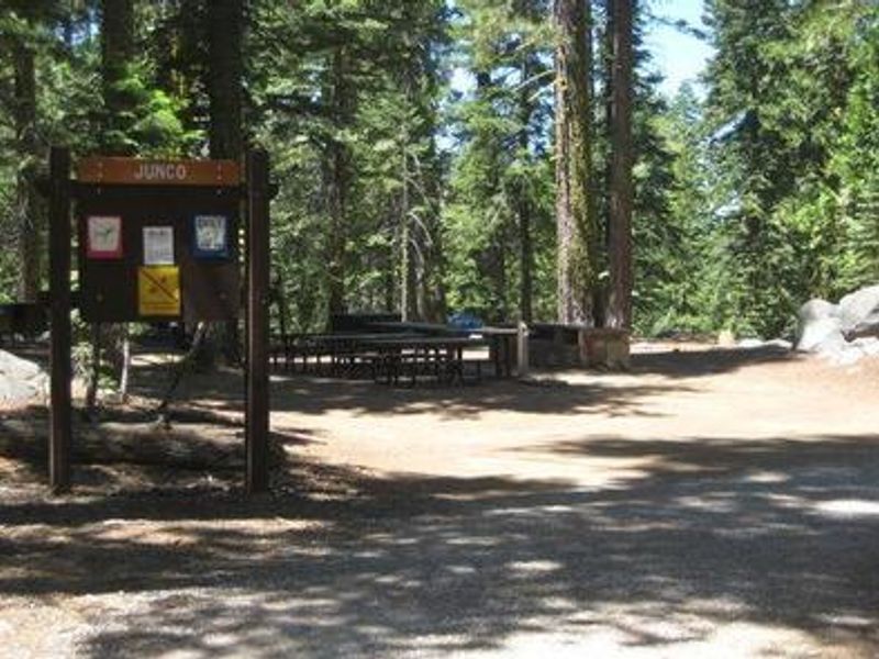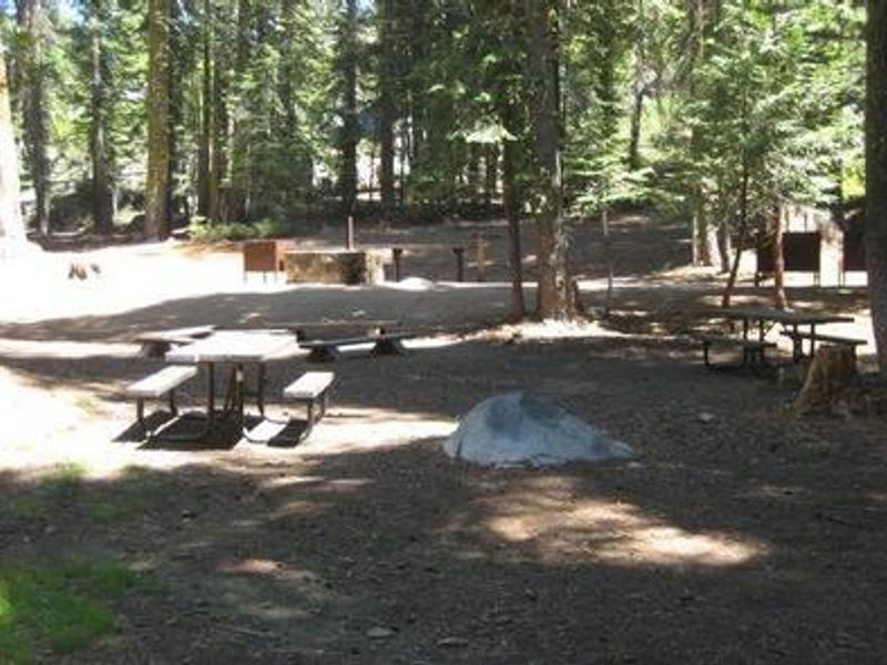 Bear River Group Campground is located in Eldorado National Forest at 6,000 feet elevation, approximately one mile from Lower Bear River Reservoir. The campground offers four separate group campsites in a mixed pine forest setting with access to excellent lake recreation. Lower Bear River Reservoir provides abundant rainbow trout fishing, along with smaller populations of brown and mackinaw trout. Lake activities include swimming, boating, canoeing, and picnicking along the shores. Upriver from the campground is the smaller Upper Bear River Reservoir, spanning 166 surface acres with 2.5 miles of shoreline. A short distance past the upper reservoir is the Pardoe Trail, which borders the Mokelumne Wilderness and runs up Squaw Ridge to elevations over 9,000 feet, providing excellent views of the surrounding Sierra Nevada. The campground is situated in a Mediterranean climate with warm, dry summers and cold, wet winters. Nearby Bear River Resort offers a restaurant, general store, boat rentals, and boat launch within a few miles. Reservations can be made up to 12 months in advance and are required during the summer operating season.