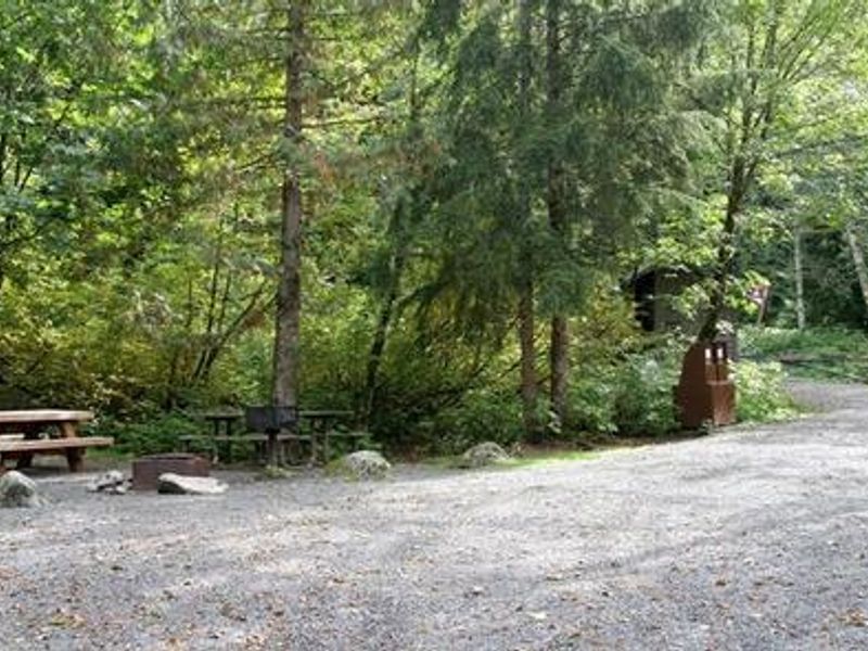 From Verlot Public Service Center, travel east on the Mountain Loop Scenic Byway for 13 miles. The campground is on the south side of the road along the river.