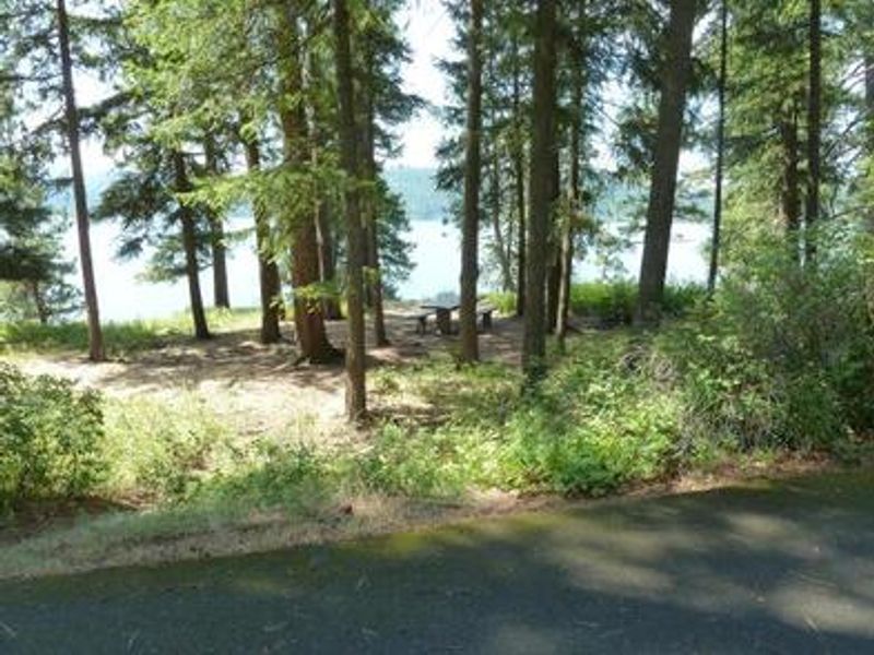 Bell Bay Campground occupies a prime location on the southeast shores of Coeur d'Alene Lake in the Idaho Panhandle National Forests. The campground features two distinct loops: an upper loop set on a hill with sweeping lake views and a lower loop positioned on a ridge along the shoreline. Surrounded by Ponderosa and mixed pine forests, the campground offers six reservable single-family sites, additional first-come first-served sites, and a group site accommodating up to 60 guests. The lower loop provides two docks where boaters can moor their vessels, though the walk from the docks involves a short but fairly steep climb. The Bell Bay Trail, a foot path running approximately one mile around the lake shore, is popular with hikers exploring the area. Coeur d'Alene Lake spans 50 square miles and is known for its excellent fishing for trout, salmon, and panfish, as well as swimming, power boating, canoeing, and scenic vistas. The campground provides vault toilets, drinking water, and campfire rings at each site. No electric hookups are available. Campers should be aware that bears frequent the area and all food must be kept in approved containers. The town of Coeur d'Alene, located about an hour north on the opposite side of the lake, offers additional recreation options including paddle boat rentals, ferry rides, and scenic seaplane tours.