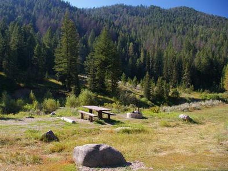 From Idaho Falls, travel approximately 56 miles east on Highway 26 to Palisades Dam. Continue 6 miles east on Highway 26, then turn left onto Forest Road 262 (Big Elk Creek Road) and travel 2 miles to the campground.