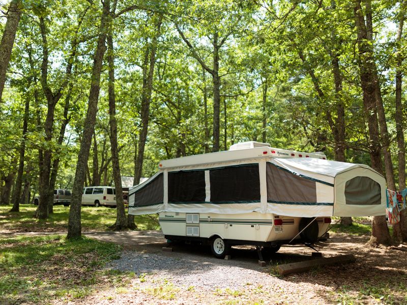 Big Meadows Campground is centrally located at mile 51.2 on Skyline Drive in Shenandoah National Park, making it an ideal base camp for exploring the park's most popular destinations. The campground sits secluded among thick trees and rolling hills at elevation in the Blue Ridge Mountains, typically 10°F cooler than the valley below. The campground features 220 reservable sites and 1 walk-up site, with a mix of pull-through and deep back-in configurations that accommodate most RVs and tow vehicles. All sites include a fire ring, picnic table, and space for tents or RVs. Seven accessible sites are available. While hookups are not provided, the campground offers seasonal amenities including coin-operated showers, flush toilets, laundry facilities, a camp store, dump station, and potable water. Big Meadows Campground provides exceptional access to park attractions. Three waterfalls are within walking distance, including Dark Hollow Falls. Big Meadows itself, known for abundant wildflowers and wildlife viewing opportunities for black bears, deer, wild turkey, and birds, is a short walk away. Byrd Visitor Center and Big Meadows Lodge are both nearby. The campground sits along Skyline Drive, which features 75 scenic overlooks across its 105-mile route along the Blue Ridge crest. With 101 miles of the Appalachian Trail passing through the park and over 500 miles of trails total, hikers have extensive options ranging from short waterfall walks to deep wilderness excursions.