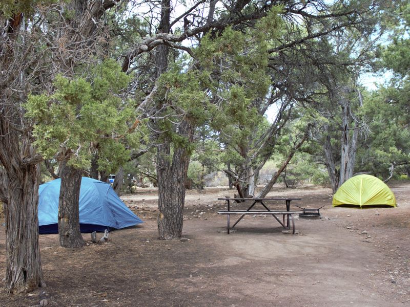 The North Rim Campground provides a remote camping experience on the less-visited side of Black Canyon of the Gunnison National Park. Situated at 7,767 feet elevation, the campground features 13 dispersed sites nestled among pinyon and juniper trees. The North Rim location offers solitude and spectacular canyon views, though getting here requires commitment: the final 5.6 miles of access road are unpaved gravel. All sites operate on a first-come, first-served basis, with payment processed exclusively through the Recreation.gov mobile app using the Scan & Pay feature. Since there is no cell service at the campground, visitors must download the app before arrival. The campground has strict size restrictions with a maximum combined length of 22 feet for RV, car, and trailer. Generators are prohibited to maintain the peaceful atmosphere. Amenities are minimal but functional, with vault toilets available year-round and seasonal potable water when the campground is open. Each site includes a designated fire ring and tent pad, though visitors should not attach anything to trees to protect sensitive vegetation. Bear boxes are provided for food storage. The ranger station operates intermittently during summer months and serves as a resource for wilderness permits and park information.