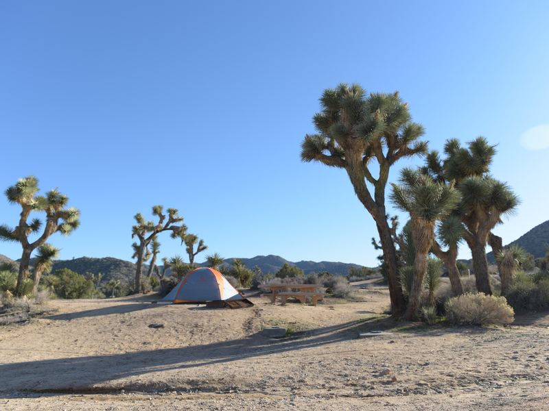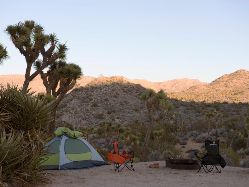 Black Rock Campground sits among one of the densest Joshua tree forests in Joshua Tree National Park, positioned on the park's northern perimeter just south of Yucca Valley. At 4,000 feet elevation, the campground offers a mix of sun and shade among the iconic trees that form dramatic silhouettes at sunrise and sunset. The facility includes 99 individual campsites plus 20 equestrian sites, each equipped with picnic tables and fire rings. The campground serves as a hub for outdoor recreation, with numerous hiking trails offering spectacular views of the low desert and high peaks around Palm Springs. Popular rock climbing sites are within a 30-minute drive. The area provides excellent opportunities for wildlife viewing, including desert tortoises, lizards, coyotes, ravens, and diverse bird species. Black Rock's proximity to Yucca Valley means shopping facilities are only five miles away. Facilities include flush toilets, potable water, a dump station, and an amphitheater. Generator use is permitted during three daily windows: 7-9 am, noon-2 pm, and 5-7 pm. The campground requires reservations year-round through Recreation.gov, bookable up to six months in advance. One ADA-compliant site (site 61) accommodates RVs up to 30 feet.