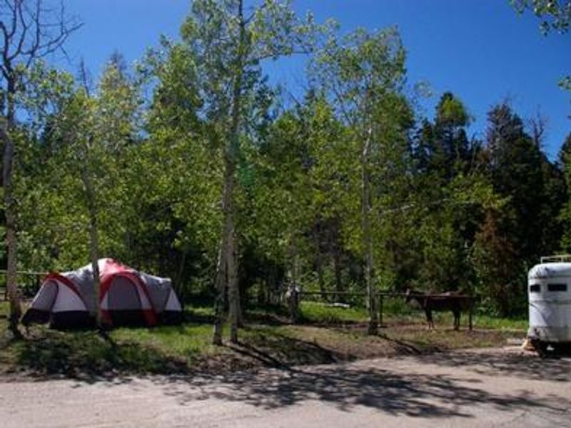 Blackhawk Campground sits just off the Nebo Loop Scenic Byway at an elevation of 8,000 feet in the Uinta-Wasatch-Cache National Forest. The campground is set in a timbered environment with groves of fir, pine, aspen, and Gambel oak trees that provide partial shade and vibrant fall color. Broad grassy meadows surround the tree clusters, with abundant summer wildflowers and wildlife. The campground serves as an excellent base for exploring the area's extensive trail network. Blackhawk Trail and Loafer Mountain Trail trailheads are located within the campground, and numerous other hiking, biking, and horseback riding trails crisscross the surrounding forest. The Mount Nebo Wilderness Area lies adjacent to the campground, offering pristine mountain scenery, abundant wildlife, and numerous backcountry opportunities. The campground includes a dedicated horse loop with equestrian facilities. Payson Lakes Area is just 5 miles away, offering rainbow and brown trout fishing, canoeing, swimming, and picnicking. The 37-mile Nebo Loop Scenic Byway provides access to high alpine terrain, dense forests, and colorful meadows, including Devil's Kitchen Geological Area with its distinctive red rock hoodoos accessible via a half-mile trail.