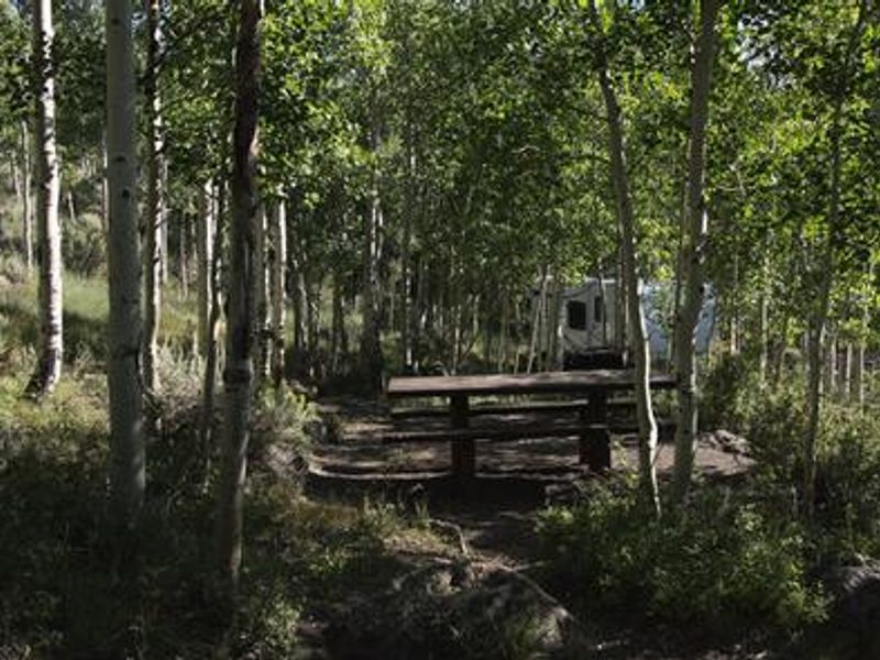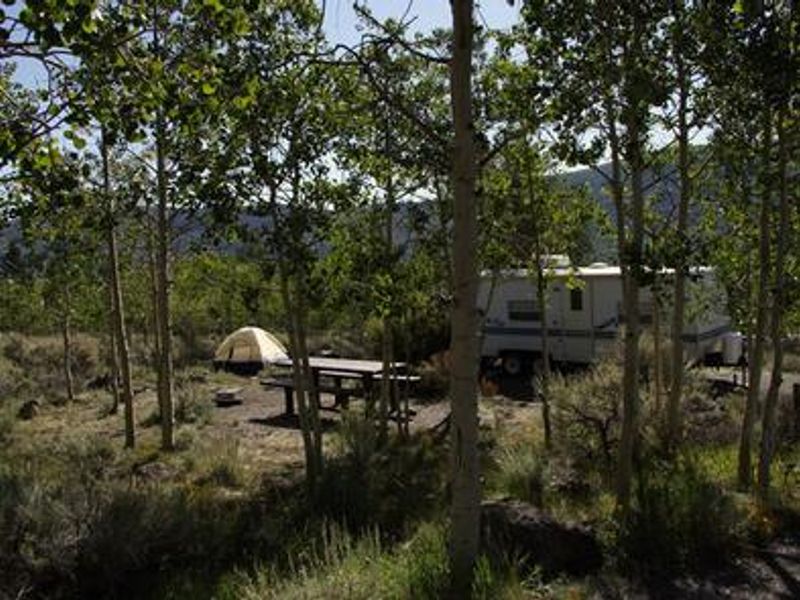 Bowery Creek Campground is located next to Fish Lake in the Fishlake National Forest of central Utah. Situated at 9,000 feet elevation on a sagebrush-covered hillside, the campground offers sweeping views of Fish Lake, Utah's largest natural mountain lake covering 2,500 acres. Most of the 43 campsites provide lake views, with the lake just a short walk below the campground across the road. Aspen and cottonwood trees provide shade throughout the area. Fish Lake is famous for its trophy Mackinaw lake trout weighing 20-40 pounds, along with rainbow trout, splake, perch, and Kokanee salmon. The lake supports boating, kayaking, canoeing, swimming, scuba diving, and wildlife viewing. Roads and parking spurs are paved throughout the campground. The campground serves as the trailhead for the 5-mile Pelican Canyon Trail, which leads through meadows and dense forests of spruce, pine, and aspen as it climbs to the 11,633-foot Fish Lake Hightop. The popular Lakeshore National Recreation Trail extends around the eastern side of the lake, rewarding hikers with stunning views after climbing 900 feet in elevation. Johnson Valley Reservoir lies just north of Fish Lake, offering additional fishing and boating opportunities.