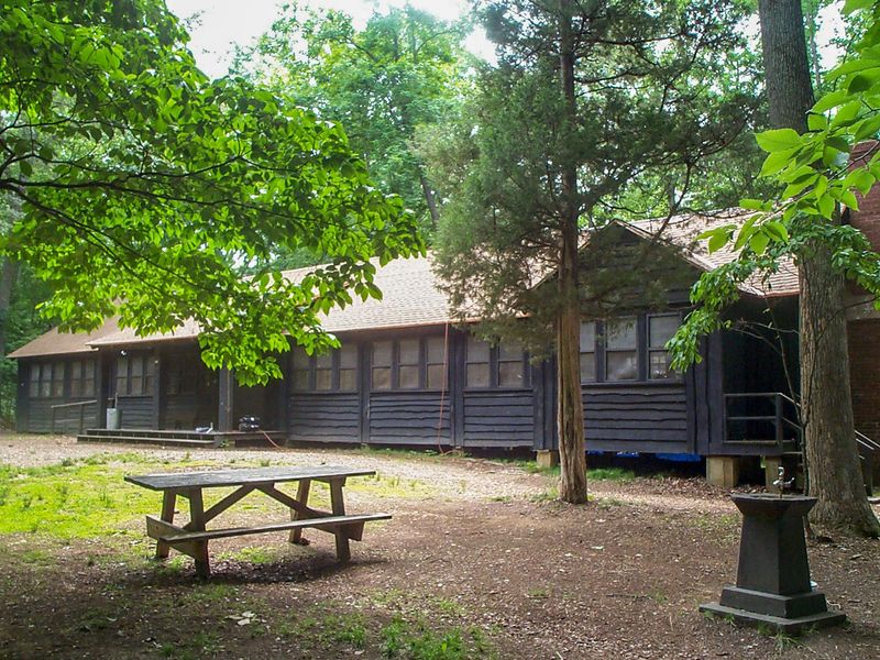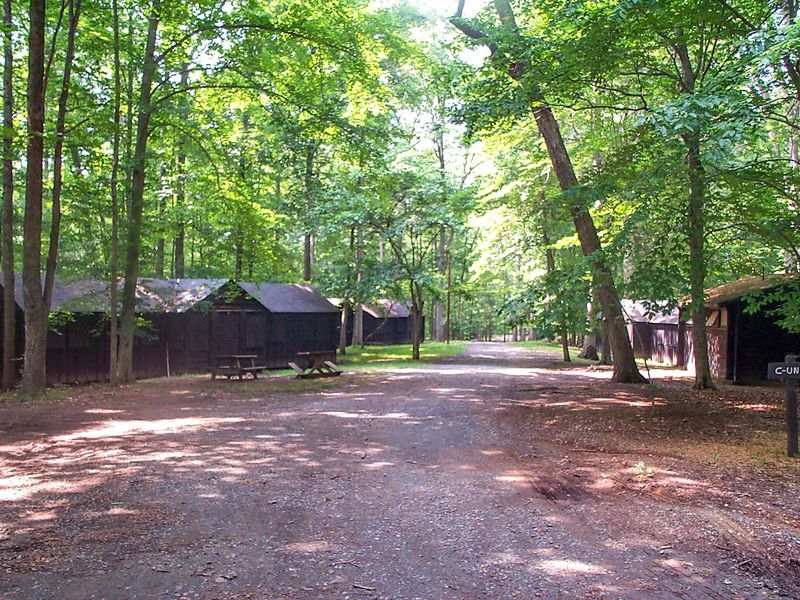 Cabin Camp 3 is a historic cabin camp facility located in Prince William Forest Park, constructed by the Civilian Conservation Corps during the 1930s and listed on the National Register of Historic Places. The camp is unique among the park's five cabin camps as the only one offering individual cabin rentals alongside group accommodations. The camp is divided into units. A and B Units offer individual cabin rentals for families and small groups, while C Unit is designed for larger groups up to 76 people. The cabins are rustic, featuring electric lights, ceiling fans, and cots. Each cabin has an outdoor grill and picnic table. Restroom facilities with hot showers are centrally located within walking distance of the cabins. The camp includes a dining hall with a complete kitchen, craft lodges with beautiful brick fireplaces, council fire rings, and an infirmary building. The forested setting provides a peaceful retreat with access to Prince William Forest Park's extensive trail system, including 37 miles of hiking trails and 21 miles of paved biking roads. The park preserves approximately 15,000 acres of Piedmont forest and offers opportunities for orienteering, fishing in streams and lakes, and wildlife observation. The camp is located along Scenic Drive, about 2 miles from the park entrance.