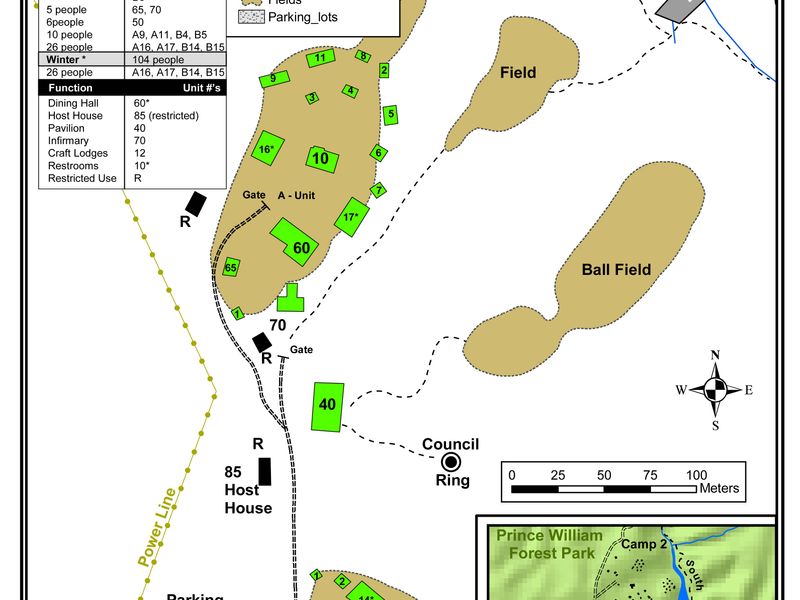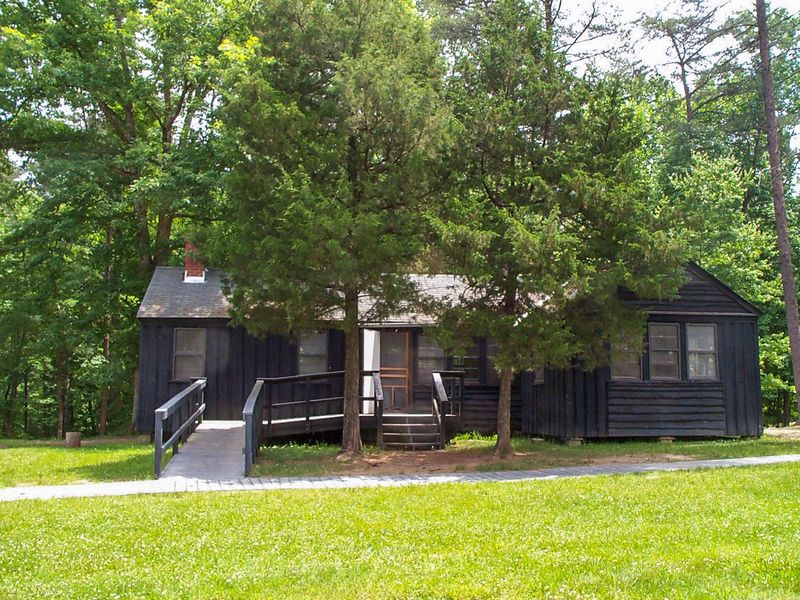 Cabin Camp 5 stands as the final and most expansive of the historic Civilian Conservation Corps cabin camps built in Prince William Forest Park during the 1930s. Set up in two units, the camp offers a mix of small cabins that sleep 2-4 people and large dorm buildings that accommodate 24 guests each, providing capacity for up to 210 people during summer months and 104 in winter. As the only cabin camp equipped with heating systems, Cabin Camp 5 operates year-round, distinguishing it from the other seasonal camps in the park. The camp facilities include a dining hall with a complete kitchen, craft lodges for activities, a central fire pit, an infirmary building, and the unique feature of an outdoor picnic pavilion located within the camp boundaries. The rustic setting maintains the historic character of the Depression-era construction while providing essential modern amenities including hot showers, flush toilets, and potable water available year-round. Groups can enjoy the surrounding 15,000-acre forest with miles of hiking trails and peaceful natural surroundings. Access to Cabin Camp 5 requires traveling on a gravel road (Mawavi Road), and the entire camp must be reserved as a single unit, making it ideal for large groups, scout troops, church groups, or family reunions. The camp operates on a reservation-only basis requiring at least two weeks advance notice. Summer rates are $900 per night while winter rates are $750 per night, not including the $20 per vehicle park entrance fee.