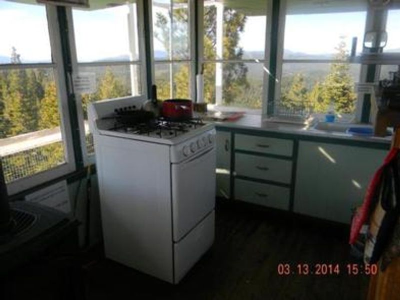 Calpine Lookout is a historic forest fire lookout tower constructed in 1934 by the Civilian Conservation Corps. It stands as one of only three remaining examples of the enclosed windmill-style lookout in California. The lookout was actively used every summer until 1975 for fire detection. Today, this three-story structure with external stairs serves as a unique rental facility, with the top observation cab as the only rentable space. The 14x14 interior cab comes equipped with two twin beds, a dry sink, table and chairs, propane lights, propane heater, propane stove/oven, and a fire finder. A limited assortment of cooking utensils, pots, and pans are provided. At the base of the tower, renters will find an accessible vault toilet, picnic table, and fire ring. The lookout has no electricity or water, so visitors must bring their own supply along with bedding, groceries, toilet paper, and personal items. Perched at 5,980 feet in the Sierra Nevada Mountains approximately 40 miles from Truckee, the lookout offers spectacular mountaintop views of Sierra Valley, Haskell Peak to the west, Nevada to the east, and Lassen Peak to the far northwest. Wildlife is abundant in the area, and on clear nights, renters can observe an endless galaxy of stars and meteorites. During summer months, visitors can drive directly to the base of the tower. In winter, when the access road is closed due to snow and ice, the lookout requires a 2-mile approach by snowshoes, skis, or snowmobile with a 1,000-foot elevation gain. Winter temperatures can drop as low as -21 degrees.