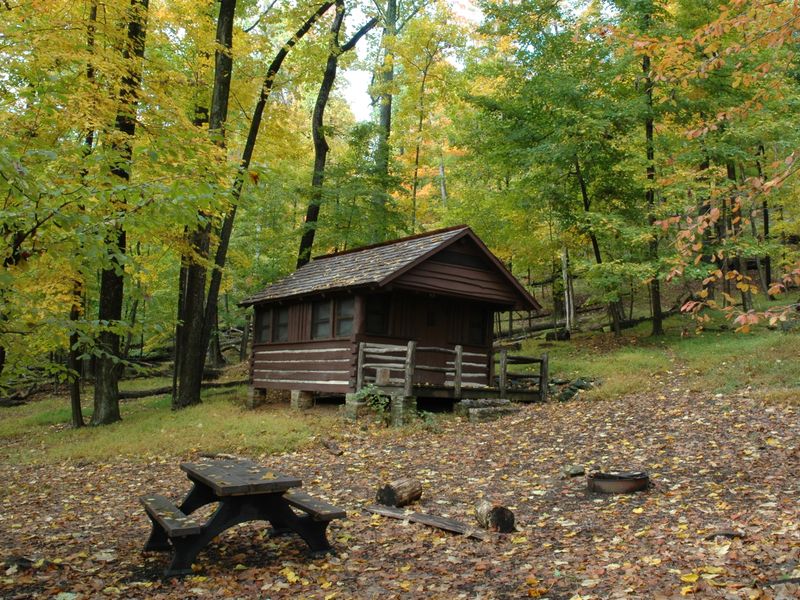 Camp Misty Mount brings together families and small groups for rustic mountain cabin camping in Maryland's Catoctin Mountains. This historic camp, completed in 1937 as part of the Works Progress Administration during the Great Depression, features 29 American chestnut log cabins and lodges listed on the National Register of Historic Places. The camp is surrounded by Eastern deciduous hardwood forests in the Blue Ridge Province. Cabins accommodate 3-6 people, while three lodges sleep up to 8. Most cabins feature interior and exterior lighting, metal cots with vinyl mattresses, picnic tables, and fire rings, though they lack running water, heat, or electrical outlets. Cabin 16 offers upgraded amenities including a bathroom with flush toilet and hot shower, plus a kitchenette. All guests bring their own bedding and cooking supplies. Three centrally located bathhouses throughout the camp provide hot showers, flush toilets, and sinks. Three dishwashing stations with potable water are available. A swimming pool operates late May through early September. The camp serves as a gateway to Catoctin Mountain Park's 25+ miles of hiking trails, with the Wolf Rock trailhead just steps away. Visitors enjoy wildlife watching, bouldering, rock climbing, and fly fishing. Nearby trails lead to Hog Rock, Thurmont Vista, and Cunningham Falls, Maryland's tallest waterfall. A dining hall with commercial kitchen is available for groups renting at least 8 cabins.
