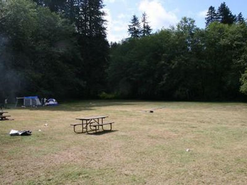 Canal Creek is a group campground in Siuslaw National Forest providing a tranquil escape into nature about 20 minutes from the Pacific coast beaches near Waldport. The facility consists of two distinct group sites divided by Canal Creek, which flows through the campground. The Canal Creek site accommodates up to 100 people and 20 vehicles, featuring a large open field perfect for group sports like soccer and football, a picnic shelter, tables, and a campfire circle. Access requires fording the gentle creek with vehicles, making it unsuitable for RVs and buses. The Alsea Group site accommodates up to 50 people and 10 vehicles, welcoming RVs. It consists of 10 separate campsites surrounding a central dining area with tables and a campfire circle. The campground is shaded by Douglas fir and spruce trees with huckleberry bushes dotting the forest floor. Roosevelt elk and bald eagles inhabit the surrounding area. Canal Creek offers fishing and crawfishing for cutthroat trout, as well as opportunities for hiking, tubing, and swimming. Sandy beaches stretch along the coast near Waldport, and Cape Perpetua Scenic Area is within easy driving distance. Mary's Peak, the highest point in Oregon's Coast Range, is also nearby.
