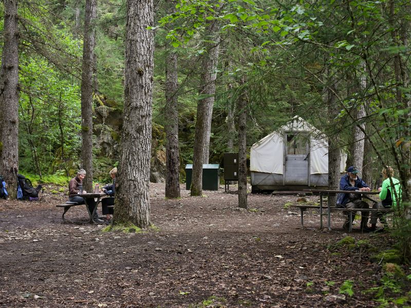 Closed — The trail reopened June 1, 2025 after flood damage repairs. The campground typically operates during summer hiking season. Winter travel requires avalanche skills and prior contact with park officials.
