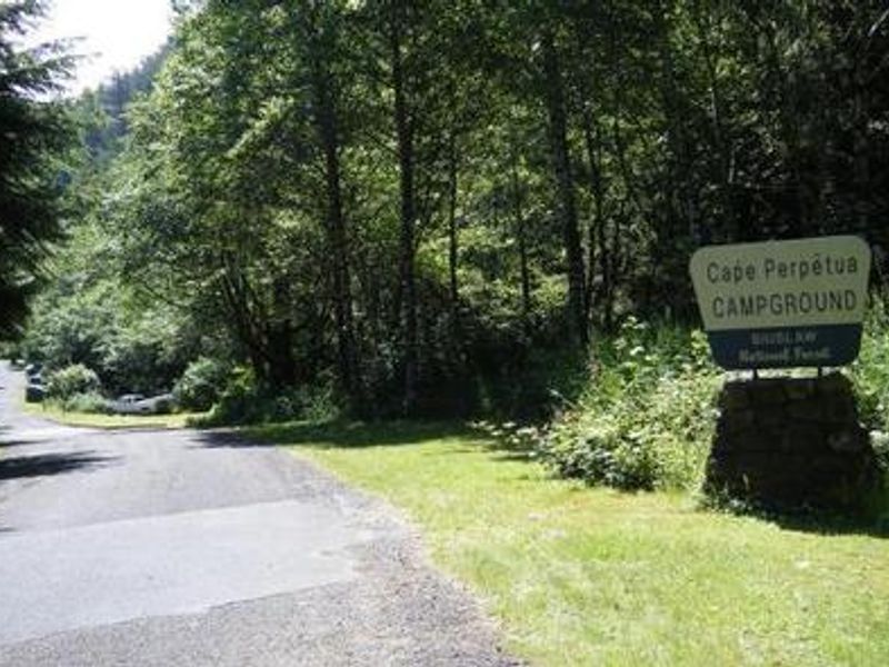 Cape Perpetua Campground is located in the Cape Perpetua Scenic Area along the banks of Cape Creek, surrounded by towering Sitka spruce, Douglas fir, and alder trees. The campground offers an ideal base for exploring the Oregon Coast, with many sites situated directly along the creek. Each campsite is equipped with a picnic table and campfire ring, and the campground provides flush toilets and drinking water from a hand pump. The campground serves as a gateway to a 23-mile trail system that winds through dense old-growth forests and leads to dramatic rocky coastal overlooks. Popular trails accessible from the campground include paths to the Giant Spruce, tide pools, and the summit of St. Perpetua, which offers one of the best views on the Oregon Coast. The Cape Perpetua Visitor Center is a short, moderate hike from the campground and features an outdoor viewing deck with phenomenal ocean views. Located on Highway 101, 22 miles north of Florence and 3 miles south of Yachats, the campground sits on the east side of the highway within the scenic area. The location provides the best of both worlds: the serenity of a forested campground with immediate access to coastal recreation including beach access at nearby Heceta Beach and extensive tide pool exploration.