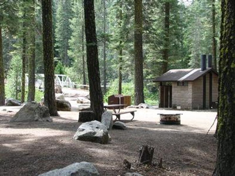 Capps Crossing sits at 5,100 feet elevation in a forested area along the North Fork of the Cosumnes River. The campground is well-shaded by cedar and fir trees and is designed primarily for groups, accommodating up to 42 people by reservation. When not reserved for groups, individual sites are available on a first-come, first-served basis. The North Fork Cosumnes River offers opportunities for wading, fishing, and swimming. Gold-seeking hobbyists are commonly seen panning for gold in the river, maintaining the excitement of the region's historic gold mining heritage. The Mediterranean climate creates warm, dry summers and cold, wet winters. Nearby attractions include hiking trails, rock climbing areas, scenic drives to overlooks, bird watching, and proximity to off-highway vehicle routes. The campground is located approximately 17 miles southeast of Pollock Pines via Sly Park Road, Mormon Emigrant Trail, and North-South Road.