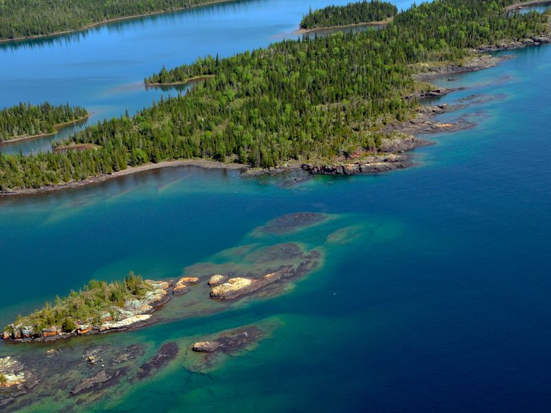 Caribou Island Campground is a primitive backcountry camping destination located on the western tip of West Caribou Island in Rock Harbor Channel, within Isle Royale National Park. This remote wilderness campground features 2 shelters and 3 total campsites, all available on a first-come, first-served basis with a required free overnight permit. Access is exclusively by water via canoe, kayak, or private boat, with overnight docking available at depths of approximately 10 feet under normal conditions. The campground provides basic amenities including seasonal composting toilets, non-potable water, food storage lockers, and a community fire ring. The terrain is uneven and rough throughout the campground, and facilities are not accessible for those with mobility limitations. A 3-night stay limit is enforced from June 1 through Labor Day to ensure equitable access during peak season. Isle Royale is a remote archipelago in Lake Superior where visitors must be completely self-sufficient and prepared for unpredictable weather conditions at all times. Quiet hours are observed from 10:00 p.m. to 6:00 a.m. EDT. Pets are not allowed in the park, and new food storage guidelines are in effect to reduce human-wildlife interactions, particularly with wolves on the eastern end of the island.