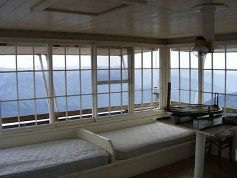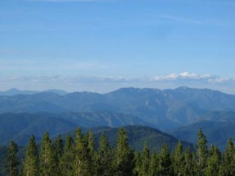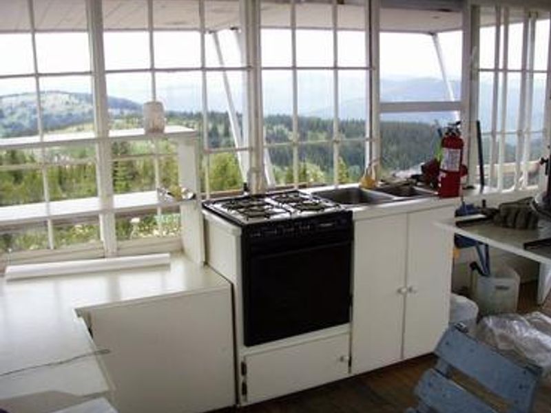 Castle Butte Lookout is a unique historic fire lookout rental cabin situated on a rocky point at 6,659 feet above sea level in the Nez Perce-Clearwater National Forests. Originally constructed in 1916 and rebuilt in its current form in 1950, this L-4 cabin offers breathtaking 360-degree views of the Selway-Bitterroot Wilderness, Seven Devils Mountains, the Great Burn area, and the deep canyons of the North Fork Clearwater River's upper drainages. The lookout accommodates up to 4 guests and features two twin beds with foam mattresses, two cots, a table with chairs, propane cook stove, propane lights, and a propane heater. A pit toilet is located in a separate building outside. Guests must bring their own water, as no water source is available on-site. The cabin requires a steep 100-foot walk up rocky terrain from the parking area. Access is via the historic Lolo Motorway, a primitive, single-lane road built by the Civilian Conservation Corps in the 1930s. The area offers opportunities for hiking along the historic Lolo Trail used by the Nez Perce and Lewis and Clark expedition, OHV riding, wildlife viewing, and summer huckleberry picking. The lookout's remote location and elevation make it an ideal spot for stargazing and watching sunrises and sunsets over the surrounding wilderness.