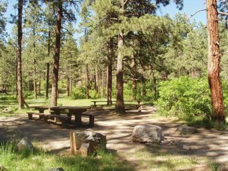 Chris Park Group Campground sits in a scenic, mostly flat area shaded by scattered ponderosa pine trees, approximately 18 miles north of Durango in the San Juan National Forest. The campground offers three group sites designed for larger gatherings. Sites 1 and 2 can each accommodate up to 75 people and include basic amenities like picnic tables, campfire rings, and electrical hookups. Site 3 is the largest, accommodating up to 150 people, and features a picnic pavilion with electricity and grills, plus recreational amenities including a volleyball court and horseshoe pits. The location provides excellent access to outdoor recreation. Several hiking trailheads are nearby, including Forebay, Goulding, Elbert Creek, and Purgatory Flats trails. The historic Rico-to-Rockwood Wagon Road, built in the late 1800s and used for six years until the railway opened, passes through the campground. Haviland Lake, less than two miles away, offers 80 acres of no-wake boating, canoeing, fishing, and accessible fishing docks. All sites include potable water, vault and composting toilets, trash pickup, campfire rings, picnic tables, and electrical hookups. The campground can accommodate RVs up to 50 feet, with equipment required to fit within parking spurs. Reservations are made through Recreation.gov, with rates ranging from $140 to $280 per night depending on the site.