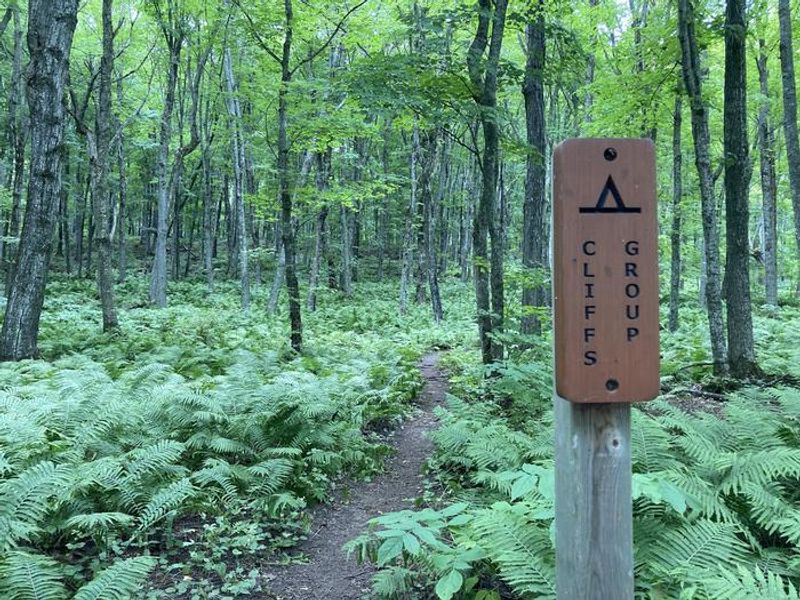 Located within Pictured Rocks National Lakeshore, Cliffs Group Backpacking Site is a designated backcountry camping area positioned high above Lake Superior and inland from the North Country Trail. The site lies approximately one mile east of the individual Cliffs Campground. While lake views are obscured by vegetation during summer months, hikers can find vantage points along the North Country Trail near the campground to glimpse Grand Island and the expansive waters of Lake Superior. This remote site accommodates groups with one shared fire ring and a seasonal vault toilet. No water is available on-site, so visitors must pack in all water needed for drinking, cooking, and cleaning. The location's elevation and position along the trail system make it suitable for experienced backpackers seeking solitude in the backcountry. Access requires hiking in from trailheads, and in winter months, snowshoeing or skiing is necessary through potentially deep snow. A backcountry camping permit is required year-round for all overnight stays at this site, with reservations handled through Recreation.gov. The permit system helps manage visitor use in this protected national lakeshore while ensuring backcountry campers are prepared for the remote conditions and limited amenities.