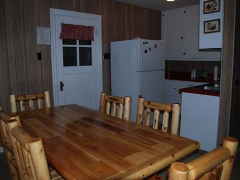 Congo Gulch Cabin sits at the historic Fremont Powerhouse site at 5,000 feet elevation in the Blue Mountains. Built in the 1930s to house workers monitoring the eight-mile pipeline from Olive Lake, the cabin now serves as a recreational rental stepping back to bygone gold mining days. The two-story cabin features three bedrooms sleeping up to 12 people, a parlor with dining area and futons, a full kitchen with modern appliances, and bathroom facilities. Electric lights and oil heating provide comfort year-round. The cabin is part of a four-cabin complex including Caretaker's Cabin, Hilltop Hideaway, and Miner's Retreat, all within a couple hundred feet of each other. Groups can rent multiple cabins and pitch tents in the grassy yard, making it ideal for family reunions or weddings. The surrounding area offers access to North Fork John Day Wilderness trails, mountain biking on forest roads, the Blue Mountain Scenic Byway, and Olive Lake for boating and fishing. The site sits beneath a large Douglas-fir next to a small pond with views of the surrounding forest.