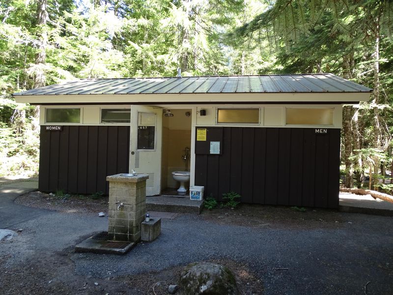 Cougar Rock Campground is situated in a steep river valley on the southwest side of Mount Rainier National Park, about 2 miles uphill from Longmire Historic District. At 3,180 feet elevation, the campground is surrounded by majestic old-growth forest that provides privacy for campsites while offering access to some of the park's premier destinations. The Nisqually River runs across the main road from the campground, and the facility includes 179 total sites organized into loops A through E and R, with 133 sites available for reservation and 46 first-come, first-served. The location is ideal for exploring the park, with Paradise less than 15 minutes away, where visitors can experience spectacular wildflower displays through July and August, along with miles of hiking trails and commanding views of Mount Rainier. The Wonderland Trail, a strenuous 93-mile route that encircles the mountain, is accessible directly from the campground. Nearby waterfalls including Carter Falls, Madcap Falls, and Comet Falls are within moderate hiking distance. The campground features an amphitheater where interpretive programs are held seasonally, helping visitors learn about the park's natural and cultural history. Due to the steep valley location and winding roads, RV access is limited to vehicles 35 feet or less, with only a limited number of pull-through sites available.