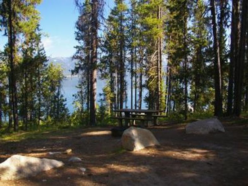 Cozy Cove Campground is located on the southeast shore of scenic Deadwood Reservoir at an elevation of 5,300 feet in the Boise National Forest. The campground sits on a bluff overlooking the reservoir, with all 16 sites providing lake views. A mixed-growth pine forest covers the campground, offering plentiful shade, and summer wildflowers are abundant throughout the area. Because of its remote location, Deadwood Reservoir is quiet and unpopulated, making it ideal for fishing enthusiasts targeting Chinook and Kokanee salmon, as well as rainbow and cutthroat trout. The reservoir is popular for boating, water skiing, canoeing, and kayaking. A concrete boat ramp is located on-site for convenient lake access. The area offers numerous trails for hiking, mountain biking, horseback riding, and off-road vehicle use. This primitive campground provides vault toilets and drinking water. Roads and parking spurs are dirt surfaces. The campground is accessible via Forest Road 579 from Banner Creek/Cape Horn Summit, though Forest Road 555 (Scott Mountain Road) is narrow, rough, and not recommended, especially for trailers.