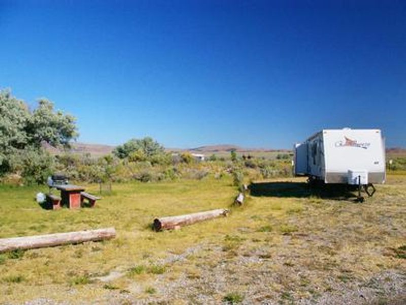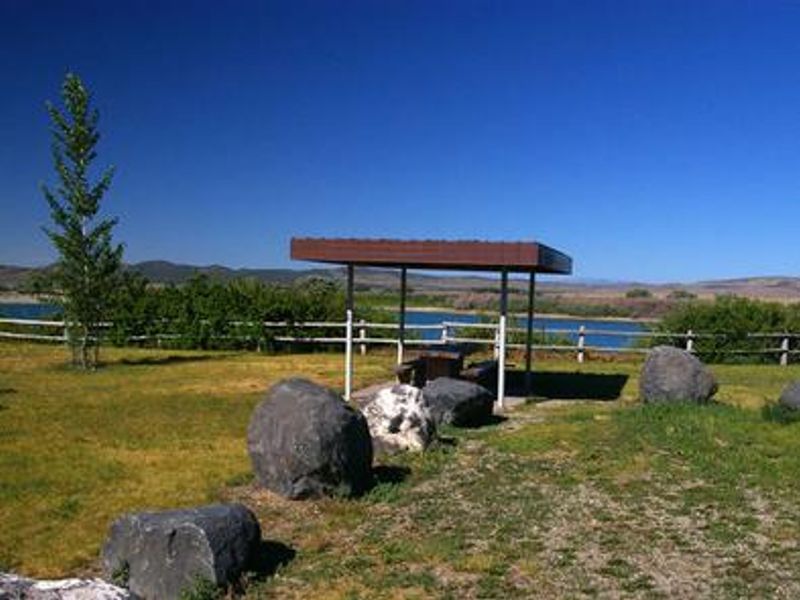 Curlew Campground is located just seven miles north of Snowville, Utah, in the Curlew National Grassland at an elevation of 4,700 feet. The campground sits adjacent to Stone Reservoir in an open desert environment dotted with sagebrush and very few trees, with mowed lawns throughout and limited natural shade. The area is renowned for year-round birding, with species including Sage Thrasher, Vesper Sparrow, Brewer's Sparrow, Ash-throated Flycatcher, and Scott's Oriole. Sharp-tailed grouse are best viewed in March and April. Nesting birds include Ferruginous Hawk, Common Poorwill, Gray Flycatcher, Pinyon and Western Scrub-Jays, Juniper Titmouse, Blue-gray Gnatcatcher, Mountain Bluebird, and Loggerhead Shrike. Near Stone Reservoir, visitors can spot Redhead, Ring-necked duck, Canvasback, and Lesser Scaup, with Canada and Snow geese arriving in fall. Stone Reservoir offers fishing and swimming opportunities, with anglers catching rainbow trout, largemouth bass, perch, and crappie. The surrounding area is crisscrossed by numerous off-road vehicle trails, and horseback riding is allowed on the open range. The campground features a large group site accommodating up to 200 people, several individual sites, and one triple-family site. Most sites include small picnic shelters for shade. Site 14 is ADA accessible with a cement pad and paved parking spur.