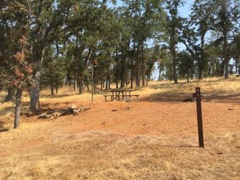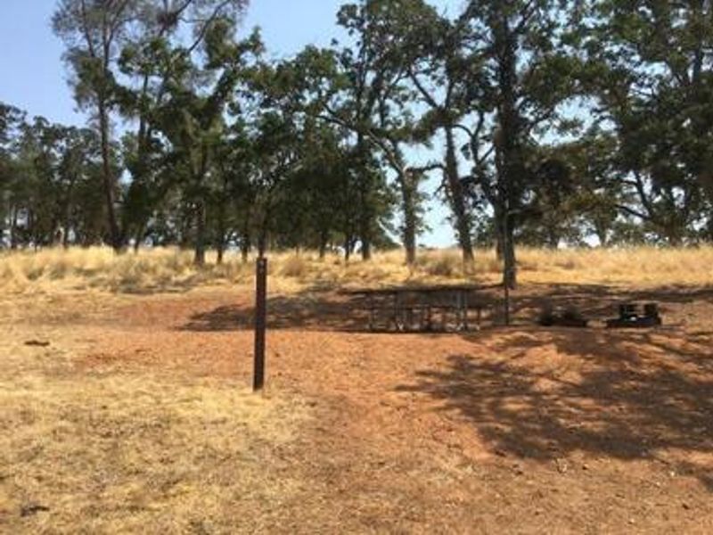 Deer Flat Boat-In Campground is New Hogan Lake's only boat-access camping area, located on a peninsula on the south shore of the 4,400-acre reservoir. This primitive campground offers 30 first-come, first-served campsites that provide a unique opportunity for boaters to camp right on the waterfront away from the developed facilities. The campground is only accessible by boat, making it ideal for campers seeking a more secluded experience on the lake. New Hogan Lake sits in the oak- and brush-covered foothills of the Sierra Nevada Mountains, created in 1964 with the completion of New Hogan Dam. The lake extends nearly eight miles upstream with 50 miles of shoreline when full. Popular activities include water skiing, wakeboarding, tubing, and fishing for striped bass, black bass, catfish, bluegill, and crappie. The area is characterized by hot, dry summers with temperatures regularly exceeding 90 degrees. Wildlife is abundant on the surrounding 6,500 acres of Corps-managed land. Visitors may spot black-tailed deer, wild turkeys, bald and golden eagles, osprey, red-tailed hawks, California quail, coyotes, and bobcats. The campground is located near historic gold rush sites including Carson Hill and the town of San Andreas. The nearby town of Valley Springs offers groceries, gas, and camping supplies.