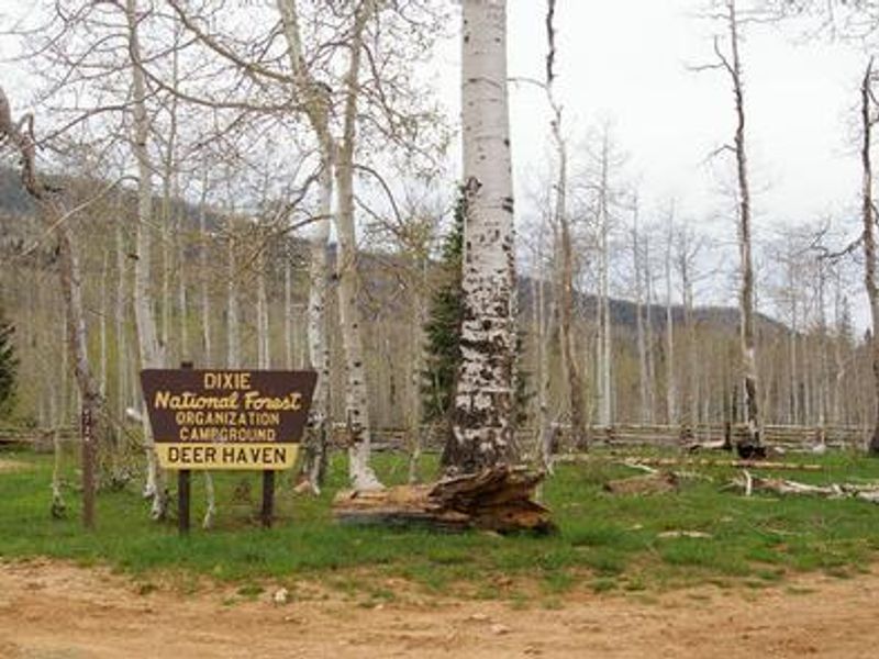 Deer Haven Campground is situated at 8,900 feet elevation in Dixie National Forest, high on the western edge of the Colorado Plateau near Cedar City, Utah. The peaceful campground is surrounded by an open stand of towering aspen and pine trees, with abundant summer wildflowers throughout the site. Designed primarily to accommodate group organizations, the campground features one large group area for family reunions, youth groups, and church organizations accommodating up to 200 people, as well as 10 single campsites available on a first-come, first-served basis. The 34-mile Virgin River Rim Trail passes near the campground entrance and is open to hiking, mountain biking, and horseback riding. Deer Haven is just 11 miles from Cedar Breaks National Monument, offering breathtaking scenery, hiking trails, and guided tours. Just outside Cedar Breaks is the Ashdown Gorge Wilderness Area, where hikers will find 10 miles of trails and the Twisted Forest, a stand of ancient bristlecone pine. Navajo Lake and Duck Lake are both within 30 minutes, offering boating, canoeing, and fishing opportunities. The Duck Creek/Markagunt ATV Trail System begins nearby, though OHVs and ATVs are only allowed in the campground for ingress and egress. The campground provides flush and vault toilets, and drinking water piped from a spring (available Memorial Day through Labor Day, though supply is limited and conservation is urged). All campsites have picnic tables and fire rings. There is no garbage disposal, so campers must pack out all trash. The maximum stay is 14 days, and quiet hours are observed between 10 p.m. and 6 a.m.