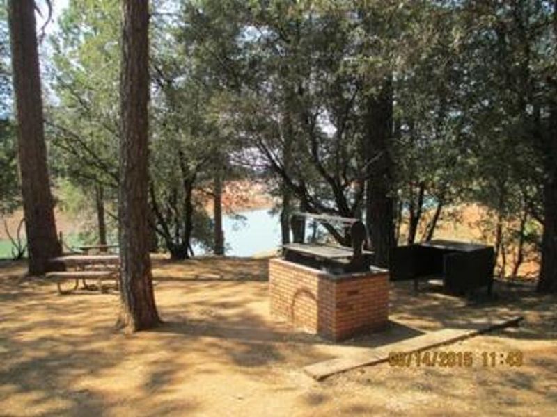 Dekkas Rock Group Campground sits on a peninsula along the McCloud Arm of Lake Shasta in Shasta-Trinity National Forest, offering panoramic views of the mountainous shoreline. This single-group site accommodates up to 60 people and provides 8 large tables, 2 large pedestal grills, 1 family barbecue grill, 2 campfire rings, and unpaved parking with additional spaces for boat trailers. Lake access is adjacent to the camp, though water levels fluctuate seasonally. The campground serves as a trailhead for the 1-mile Hirz Bay Trail and sits near the Hirz Bay boat ramp, providing access for both motorized and non-motorized watercraft. Lake Shasta offers excellent fishing for trout, catfish, Chinook salmon, crappie, bluegill, white sturgeon, brown bullhead, and bass. Water skiing and other water sports are popular activities on the 365-mile shoreline lake. The campground sits at 1,067 feet elevation in a landscape of steep mountains covered in manzanita and evergreens, with views of snow-capped Mount Shasta in the distance. Bear-proof food storage is required due to active bear presence. Nearby attractions include Lake Shasta Caverns and Hirz Mountain Lookout, which offers panoramic views at 3,500 feet elevation.