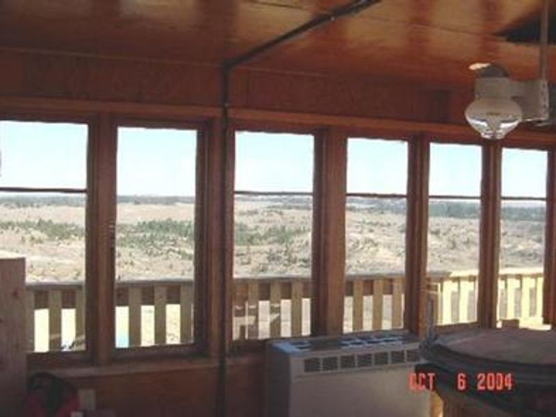 Diamond Butte Lookout sits atop a 30-foot masonry tower on Diamond Butte at an elevation of 4,245 feet in the Custer Gallatin National Forest, approximately 40 miles from Ashland, Montana. Originally moved from Yeager Butte in 1958, this lookout served as an active fire detection station until 2001 and continues to function as an active fire lookout during summer months. The lookout accommodates up to 4 people and is furnished with a twin bed with mattress, a double futon with mattress, a cot, table, and chairs. Propane appliances include a cook stove with oven, lights, and a heater. Basic cooking and eating utensils, along with cleaning supplies, are provided. An outhouse with pit toilet is located at the gate 200 feet below the lookout, and a wagon is available in the basement to help haul gear up the steep hill. No water or electricity is available; guests must bring all their own water and pack out all trash. The lookout offers expansive views of nearby hills and the distant Bighorn Mountains about 100 miles away. The surrounding landscape features sparse vegetation including sagebrush and lupin. Wildlife in the area includes fox, black bear, antelope, and various bird species. Activities include hiking, horseback riding, mountain biking, off-road vehicle riding, and hunting. Reservations are made through Recreation.gov, and guests must call for the combination lock code prior to their stay.