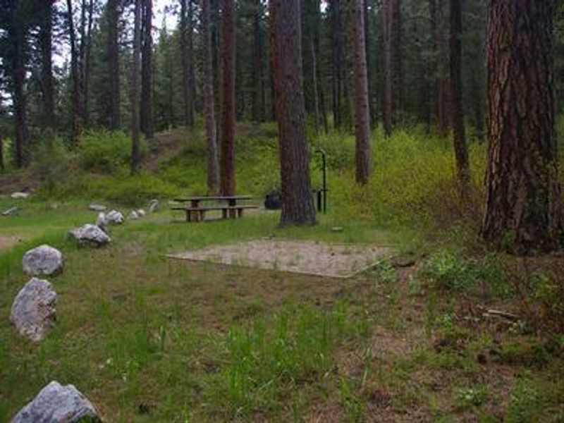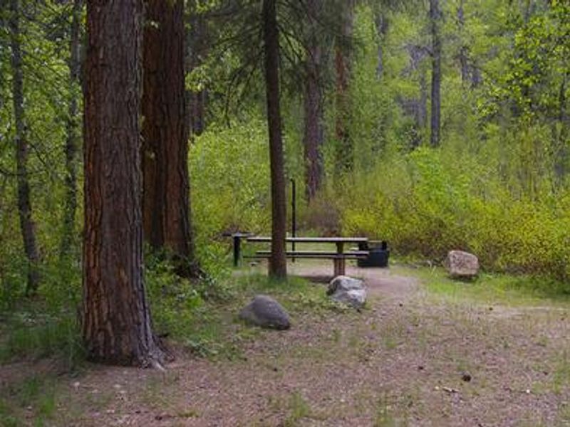 Dog Creek Campground is nestled in a ponderosa pine forest along the banks of Dog Creek at an elevation of 4,600 feet, four miles north of the town of Pine in south-central Idaho. The campground sits at the foot of the Trinity Mountain Range in a scenic setting with stands of cottonwood, aspen, Douglas fir, and ponderosa pine. Summer wildflowers are abundant, and deer and hummingbirds are frequently spotted in the area. The campground offers 11 single-family campsites and two small group sites that can accommodate up to 15 people each. The South Fork Boise River runs within a quarter-mile of the campground, providing excellent opportunities for rafting, swimming, and fishing for rainbow trout. Paradise Hot Springs is located nearby for those seeking natural hot spring soaking. Green Creek Trail 270, a 4.5-mile trail for hiking, horseback riding, mountain biking, and off-road vehicles, begins a mile from the campground. Cross Cut Trail 172 is also close by and offers similar multi-use recreation opportunities. Baumgartner Hot Springs is approximately 16 miles away, featuring a soaking pool and nature trail. Kelly Creek Flats Recreation Area is adjacent to Baumgartner, providing additional trail opportunities for exploring the Boise National Forest backcountry.