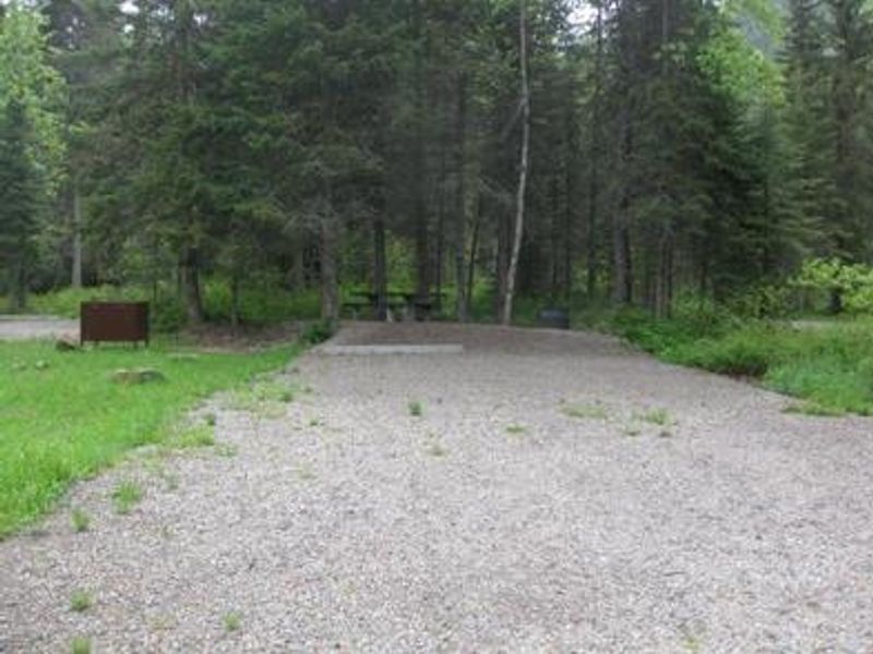 Doris Creek Campground is located on the west side of Hungry Horse Reservoir, high in the Rocky Mountains west of the Continental Divide and just south of the Canadian border. The campground sits along the massive Hungry Horse Reservoir, created by the 10th highest dam in the United States, which provides hydroelectric power and flood control. This area is home to lynx, grizzly bear, and bull trout, making it a premiere destination for wildlife viewing. The campground offers 9 overnight sites for tent and RV camping, with 5 sites available for reservation and 4 sites available first-come, first-served. Each site is equipped with a picnic table and campfire ring with grill. The campground has gravel roads and parking spurs, and an accessible vault toilet is provided. A campground host stationed at the nearby Doris Point Boat Launch is available to answer questions. The stay limit is 16 consecutive days. Boating is popular on the 27,750-acre reservoir, with a concrete boat ramp accessible at Doris Point Boat Launch just above the campground, which also provides ample parking. Swimming and fishing are popular activities, and anglers can expect to catch cutthroat trout and other species. The campground is approximately 14 miles southwest of the West Glacier entrance to Glacier National Park, making it an ideal base camp for exploring the area.