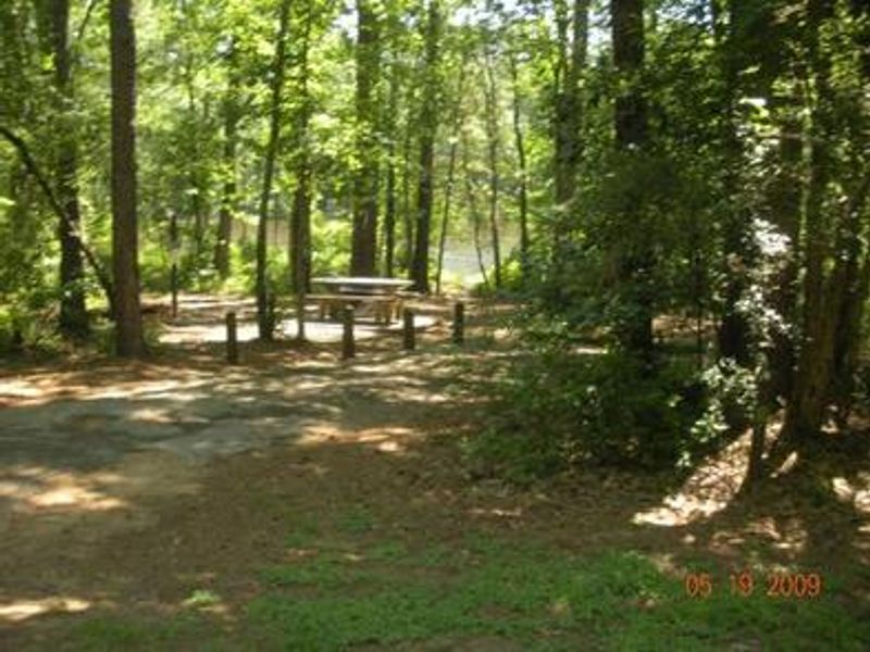 Double Lake Recreation Area was constructed in 1937 by the Civilian Conservation Corps and sits on a 23-acre lake within the Sam Houston National Forest. The campground provides a variety of camping options including tent sites, RV sites with electric hookups, and group camping facilities. The lake is stocked with bass, bream, and catfish and is open for fishing year-round, though only boats with small electric motors are permitted. The recreation area features extensive trail access, including a 21-mile mountain bike trail that winds around the lake and a 5-mile section of the Lone Star Hiking Trail leading to Big Creek Scenic Area. During the warmer months, visitors can enjoy swimming at the sandy beach. The surrounding forest consists of rolling hills covered with hardwoods and pines, providing a peaceful natural setting. Reservations are available through Recreation.gov for individual sites, group sites, and a shelter that accommodates up to 75 people. Day use is also available for a per-vehicle fee. The area experiences hot and humid summers from June to August, with moderate to cool temperatures and wet conditions from September through May.