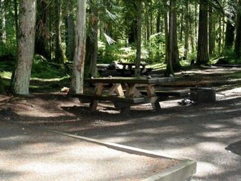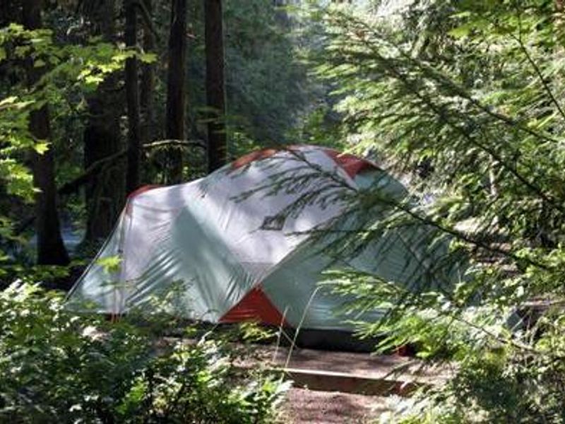 Douglas Fir Campground is situated along the banks of the North Fork Nooksack River at milepost 35 of the Mt. Baker Highway in Mt. Baker-Snoqualmie National Forest. The campground features 30 sites nestled among towering old-growth Douglas fir, western red cedar, and western hemlock trees, with several sites positioned directly at the river's edge. A historic sheltered picnic area constructed by the Civilian Conservation Corps is available for group reservations. The campground serves as an excellent base for exploring the surrounding Mt. Baker Wilderness area, with the Horseshoe Bend Trail accessible directly from the campground. This easy forest trail follows the North Fork Nooksack River upstream through old-growth forests and past whitewater rapids, offering views of Church Mountain. The popular Skyline Divide Trail is nearby, climbing through forest into open meadows with sweeping views of glacier-covered Mt. Baker. The campground is also a launch site for whitewater rafting and kayaking on the North Fork Nooksack River. Located just 2.5 miles east of the small community of Glacier, the campground provides convenient access to supplies while maintaining a peaceful forest setting. Wildlife in the area includes black-tailed deer, elk, bald eagles, black bears, and various salmon species in the river. On clear days, visitors can view Mt. Baker's snow-capped 10,781-foot summit and extensive glacier network.