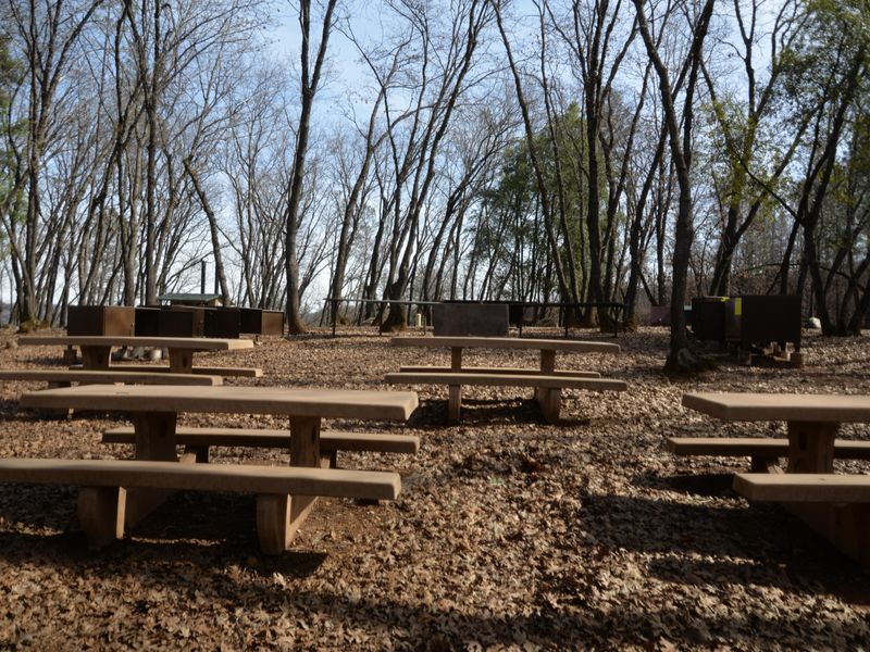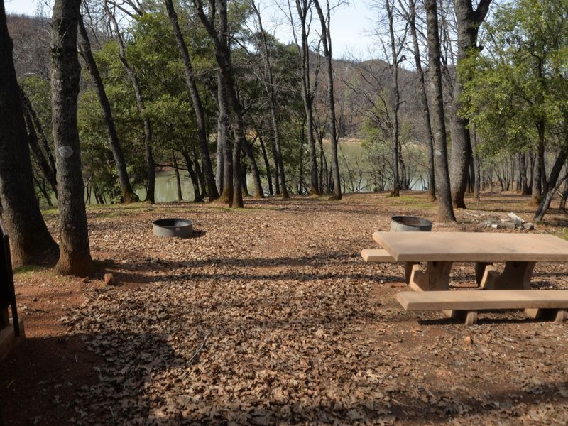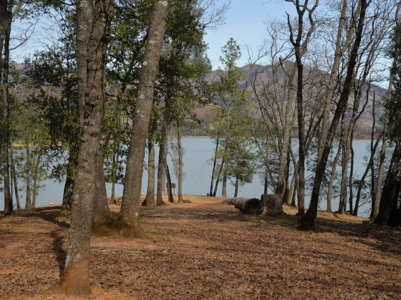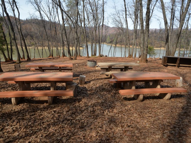 Dry Creek Group Campground is located on the southern shore of Whiskeytown Lake in Whiskeytown National Recreation Area, 14 miles west of Redding, California. This tent-only group campground features two spacious sites on a peninsula surrounded on three sides by the lake. Each site can accommodate groups of 20 to 50 people and includes large serving tables, numerous picnic tables, small and large charcoal barbecue grills, cleared fire pit areas, bear-proof storage lockers, vault toilets, and drinking water. The campground sits within oak woodland with a canopy of conifer, oak, and maple trees offering pleasant shade and beautiful lakeside views. The location where the Klamath Mountains, Cascade and Coast Mountain Ranges, and Sacramento Valley meet creates diverse wildlife viewing opportunities. The 3,200-acre lake offers swimming, kayaking, sailing, paddle boarding, and water skiing. Boats may be launched at nearby Brandy Creek Marina and moored at the campground. Year-round activities include hiking, mountain biking, horseback riding, gold panning, and fishing. Brandy Creek Beach is one mile away with sandy beaches, swimming areas, and seasonal amenities including showers, a store, and equipment rentals. The Brandy Creek Falls trailhead is four miles from the campground. Note that effects from the 2018 Carr Fire remain, including potential falling trees and branches.