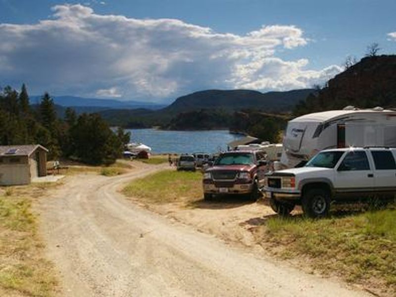 Dutch John Draw Campground is a group camping facility nestled in a quiet cove on Flaming Gorge Reservoir at 6,000 feet elevation within the Flaming Gorge National Recreation Area. This secluded site accommodates up to 50 people and offers spectacular views of the reservoir from a hillside dotted with pinyon pines. The campground features a large picnic shelter with excellent water views, picnic tables, and a grill. A dedicated boat dock is accessible via a short trail from the campground, providing campers with direct access to boating, water skiing, fishing, and swimming. The Mustang Ridge boat ramp is located less than 2 miles away. The site is accessed via well-maintained gravel roads, with gravel parking spurs throughout. Nearby attractions include Flaming Gorge Dam, which offers guided tours of the hydroelectric plant and a visitor center with area history exhibits. The Green River below the dam provides exceptional rafting opportunities through dramatic geology and historic landscapes. Campers must bring their own water as none is available on-site. The gate to the site is locked; access is provided by the Deer Run or Cedar Springs host upon check-in.