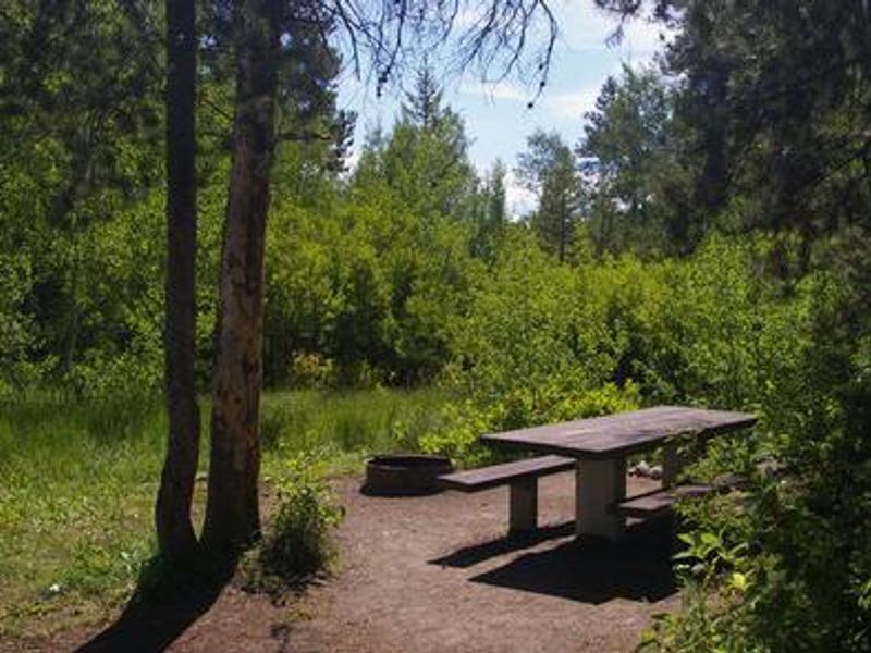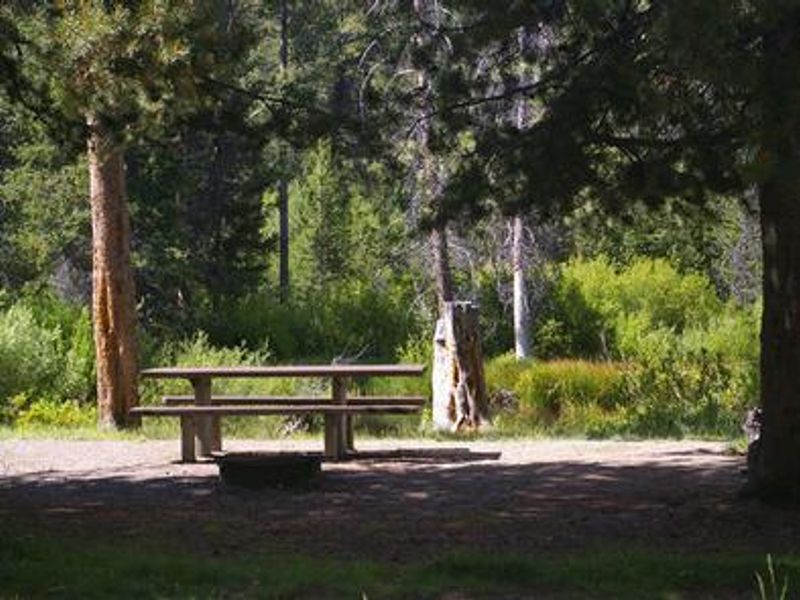 Easley Campground is located along the beautiful Big Wood River at an elevation of 6,800 feet in the Sawtooth National Recreation Area, just 14 miles north of Ketchum, Idaho. The campground offers 8 single and 2 double sites available on a first-come, first-served basis, situated in groves of cottonwood and aspen with abundant shade from Douglas fir, ponderosa pine, and lodgepole pine. Colorful summer wildflowers bloom throughout the season, and willows line the riverbanks. The Big Wood River provides excellent fly-fishing opportunities for rainbow, brown, and brook trout, as well as float tubing. The 18-mile Harriman Trail passes through the campground, offering hiking and biking access to deep canyons, sparkling lakes, and high country scenery. Wildlife viewing opportunities abound in this spectacular mountain setting. Easley Hot Springs is located less than a quarter-mile from the campground entrance, offering a swimming pool, hot tubs, showers, and a small store for a fee. The Sawtooth National Recreation Area Visitor Center is 6.5 miles away with a museum, bookstore, area information, dump station, and drinking water. Sun Valley Resort is 11 miles south, providing additional recreational opportunities.