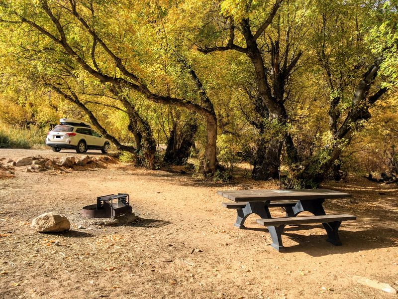 Open — Open year-round. Potable water available seasonally in summer; no water in winter. Echo Park Road receives no winter maintenance and requires high-clearance 4WD. Road becomes impassable when wet or snowy. Stage 2 fire restrictions currently in effect: no wood or charcoal fires allowed, pressurized gas stoves only.