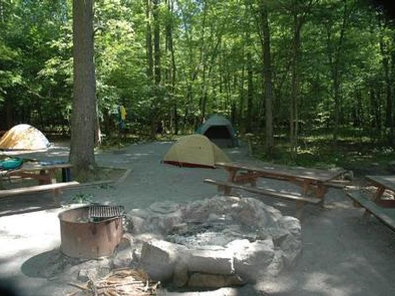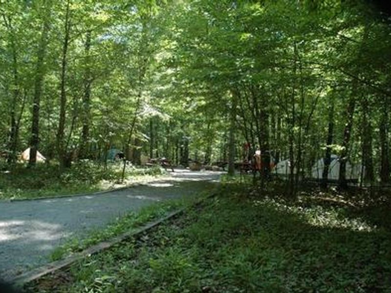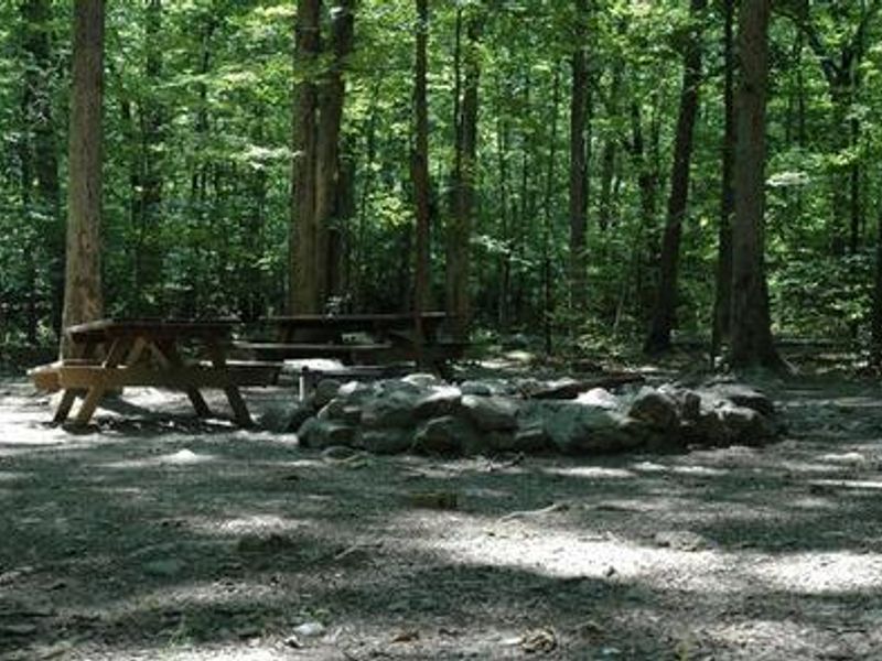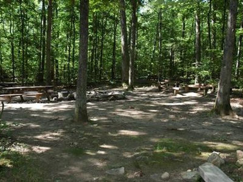 Elizabeth Furnace Group Camp is located along the tranquil Passage Creek in the Shenandoah Valley within George Washington National Forest. This reservation-only group campground features two group sites: Site A accommodates up to 50 people for $55 per night, and Site B accommodates up to 25 people for $30 per night. The campground operates year-round with vault toilets available throughout the year, but there is no drinking water on-site. Campers must bring their own water or collect it from the hand pump at the nearby family campground. The area offers excellent recreation opportunities including hiking the Pig Iron and Charcoal Interpretive Trail to learn about historical iron production, challenging hikes to Buzzard Rock, and fishing in Passage Creek which is seasonally stocked with trout. The campground sits within diverse Appalachian hardwood and mixed pine-hardwood forests that support 40 species of trees, 60 species of mammals, and 200 species of birds. Other activities include mountain biking and exploring the historic cabin accessible via a swinging bridge. Bear-proof dumpsters are provided, and flash flooding is a potential hazard in the area.