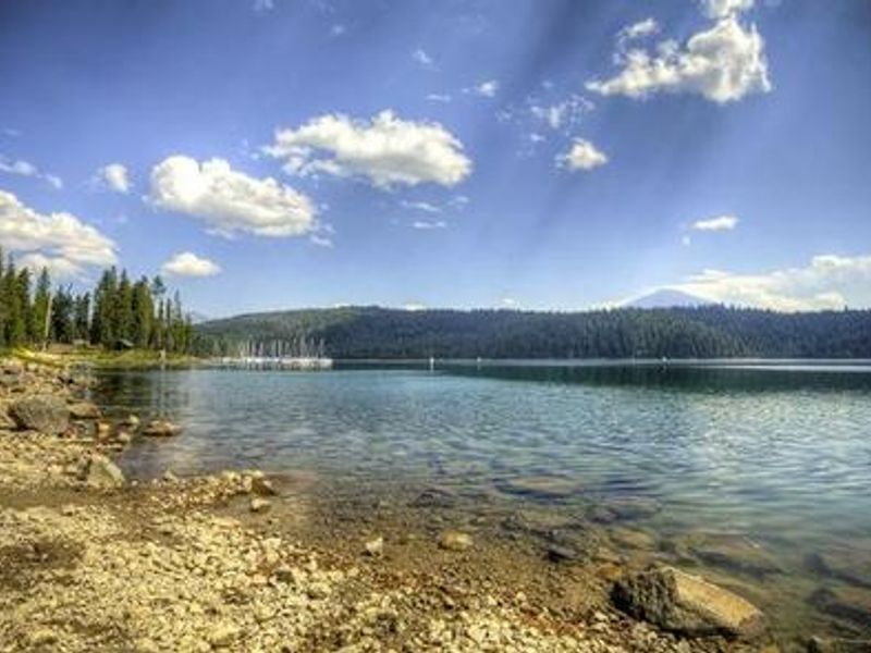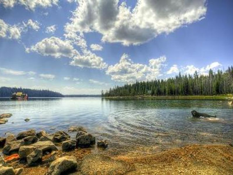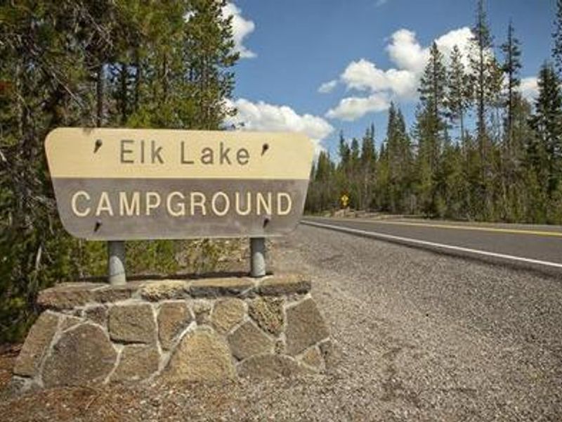 Elk Lake Campground is an older-style small hillside campground situated on the north end of Elk Lake along the scenic Cascade Lakes National Scenic Byway in the Deschutes National Forest. At an elevation where magnificent views of South Sister, Mt. Bachelor, and other Cascade peaks are visible, this campground provides access to a variety of mountain recreation opportunities. The campground features a boat launch within the facility, though parking is extremely limited. Both motorized and non-motorized boating are allowed on Elk Lake, providing opportunities for fishing, swimming, windsurfing, and water skiing. The Elk-Devils Trail offers hiking and horseback riding along a historic route connecting Elk Lake to the Wickiup Plains Trail near Devils Lake. The surrounding area includes wetlands, diverse forests, and rocky slopes that provide habitat for shorebirds, porcupine, deer, bats, and occasional black bears. Facilities include vault toilets, picnic tables, and fire rings with grills at each site. A hand pump provides drinking water when the campground is operational. Swimming areas are closed to animals. The campground accommodates RVs and trailers up to 36 feet in maximum site spur length, making it accessible for a range of camping setups along this popular scenic byway.