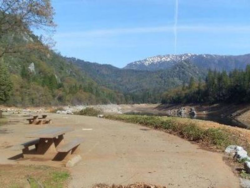 Ellery Creek Campground sits on the McCloud Arm of Shasta Lake in the Shasta-Trinity National Recreation Area. The campground's terraced design provides lake views from all lower sites and select upper sites. At certain water levels, boats can be moored directly on the shore within sight of the campground, making Ellery Creek particularly popular with boaters and water enthusiasts. The campground features 19 sites, each equipped with a picnic table, tent pad, fire ring, bear box, and paved parking spur. A public boat ramp is located approximately 4 miles away at Hirz Bay, and informal mooring is allowed at Ellery Creek when water levels are sufficient. The area is popular for water skiing, jet skiing, and fishing. Lake Shasta offers excellent fishing for trout, catfish, Chinook salmon, crappie, bluegill, white sturgeon, brown bullhead, and bass. Shasta Lake sits at an elevation of 1,067 feet, surrounded by steep mountains blanketed in manzanita and evergreens, with snow-capped Mount Shasta visible in the distance. Nearby attractions include the Lake Shasta Caverns on the McCloud Arm and Hirz Mountain Lookout, which offers panoramic views at 3,500 feet elevation. The nearest store is 21 miles away in Lakehead.