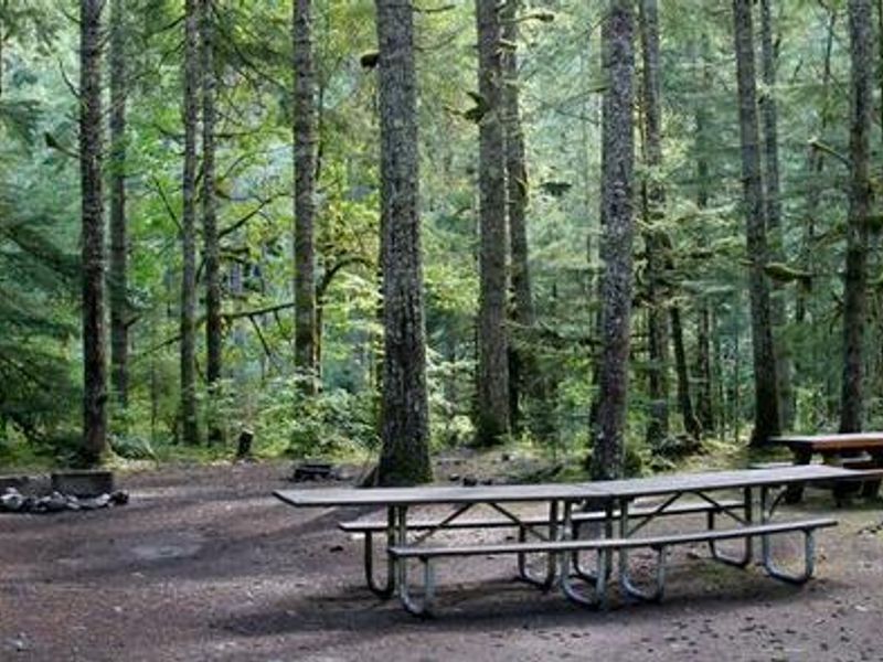 Excelsior Group Camp was located along the North Fork Nooksack River in the Mount Baker-Snoqualmie National Forest, providing group camping access in the spectacular North Cascades region. The facility consisted of two separate group sites, each designed to accommodate up to 50 people. Site A was located at the end of the campground loop, while Site B was positioned near the entrance. Both sites featured group fire rings, picnic tables, and individual fire pits. The campground was situated near mile 40 of the Mount Baker Scenic Byway (SR 542), approximately 7 miles past the town of Glacier. Its location provided access to numerous hiking trails including the nearby Horseshoe Bend Trail and the popular Skyline Divide Trail, which offered views of glacier-covered Mount Baker. The North Fork Nooksack River, fed by glaciers and snowfields from Mount Baker and Mount Shuksan, provided habitat for native salmon species and supported diverse wildlife including elk, bald eagles, and black bears. The campground operated seasonally during summer and early fall months and was available by reservation only through Recreation.gov. A kayak and raft launch was accessible under the highway bridge near the campground. No drinking water or electric hookups were available on site.